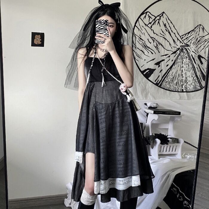 夏服韓国ファッショントレンドスタンダードスカート ダーク薄手ウェストワンピースレディース レトロ ストリート 夏物 ステッチ スタイル ウエスト Studios74750037657 | pLegLad Studios