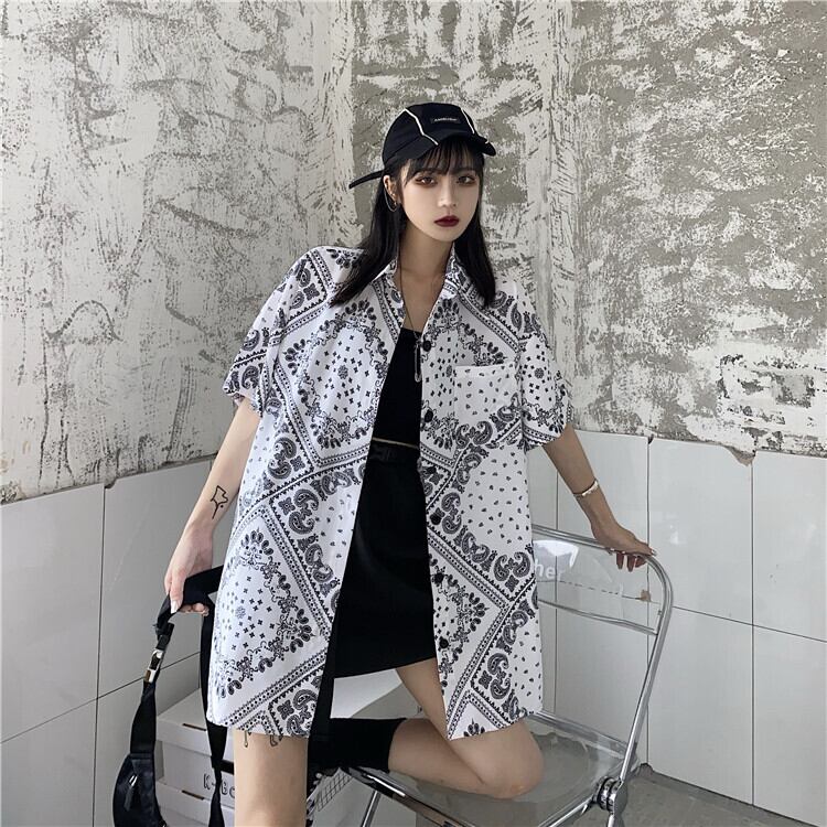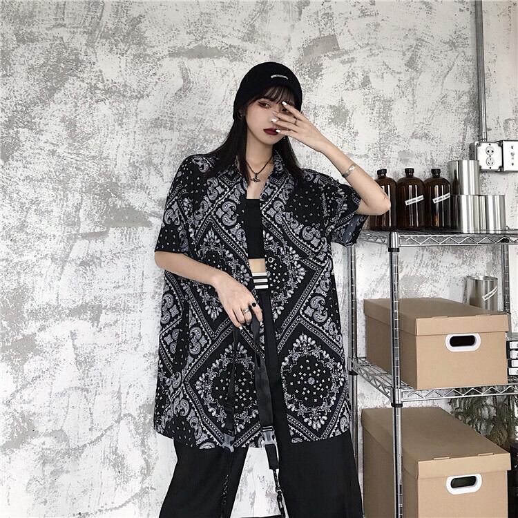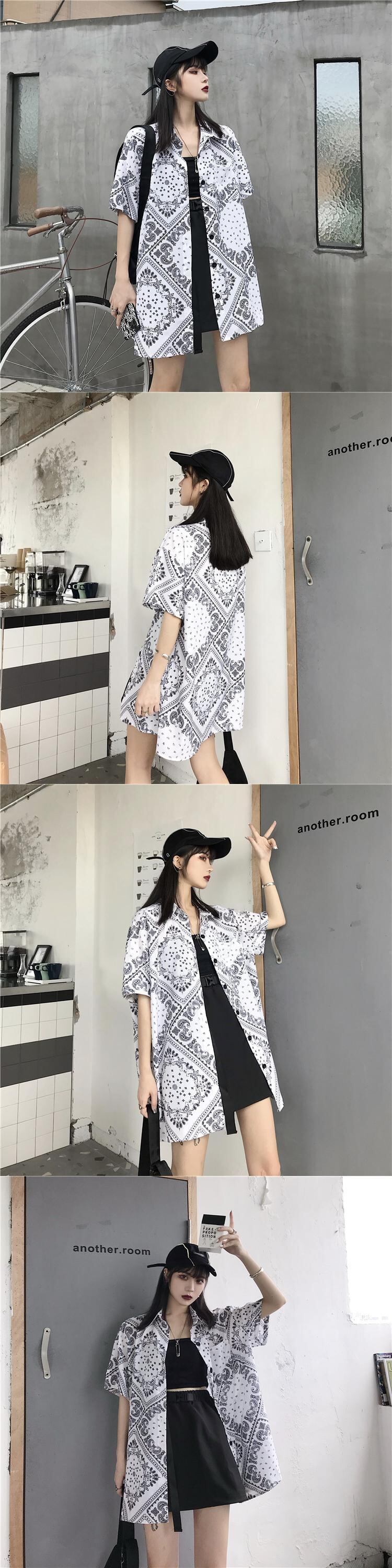 夏服韓国ファッショントレンドスタンダードダークFlowerデザイン 半袖スリーブシャツ ルーズトップス ジャケット ショート レトロ ハーフスリーブ 夏物 フラワーデザイン Studios7646227474 | pLegLad Studios