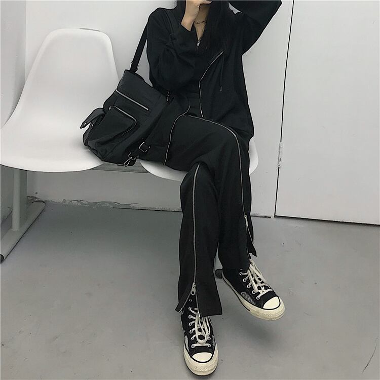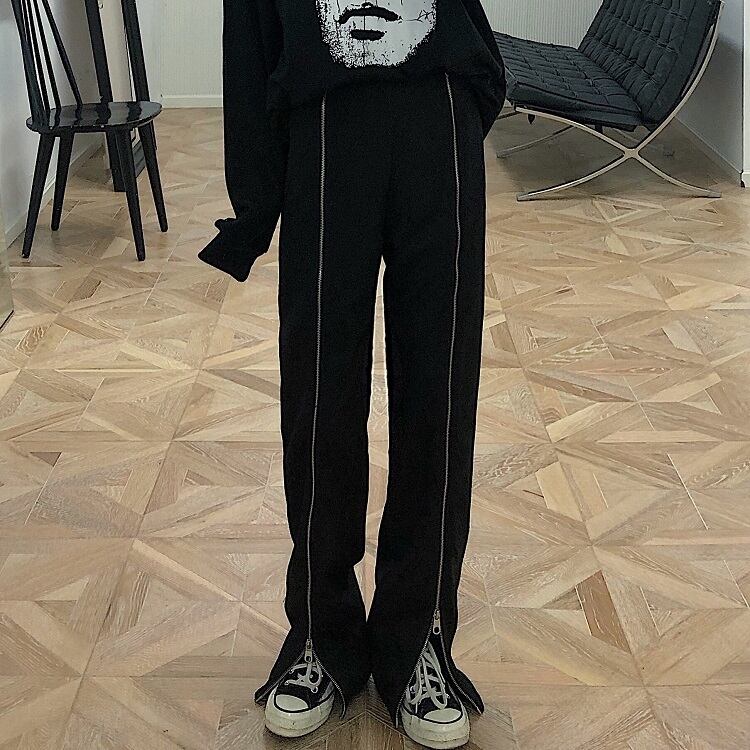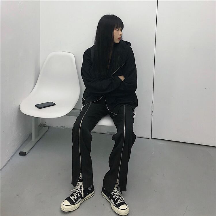韓国ファッショントレンドジッパースリットダークパンツ ルーズカジュアルメンズレディース スタイル Studios38688925358