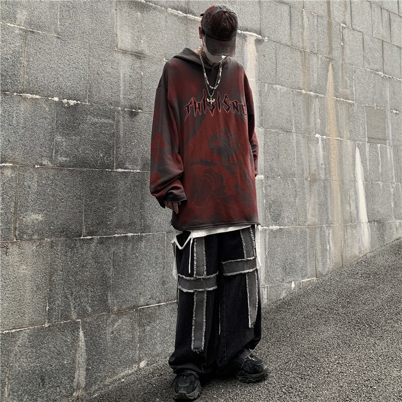 秋物ウィンタートレンドダークプリントルーズフードポケットセーター ジャケット コート メンズレディース ストリート オータム 冬物 Studios86702637018 | pLegLad Studios