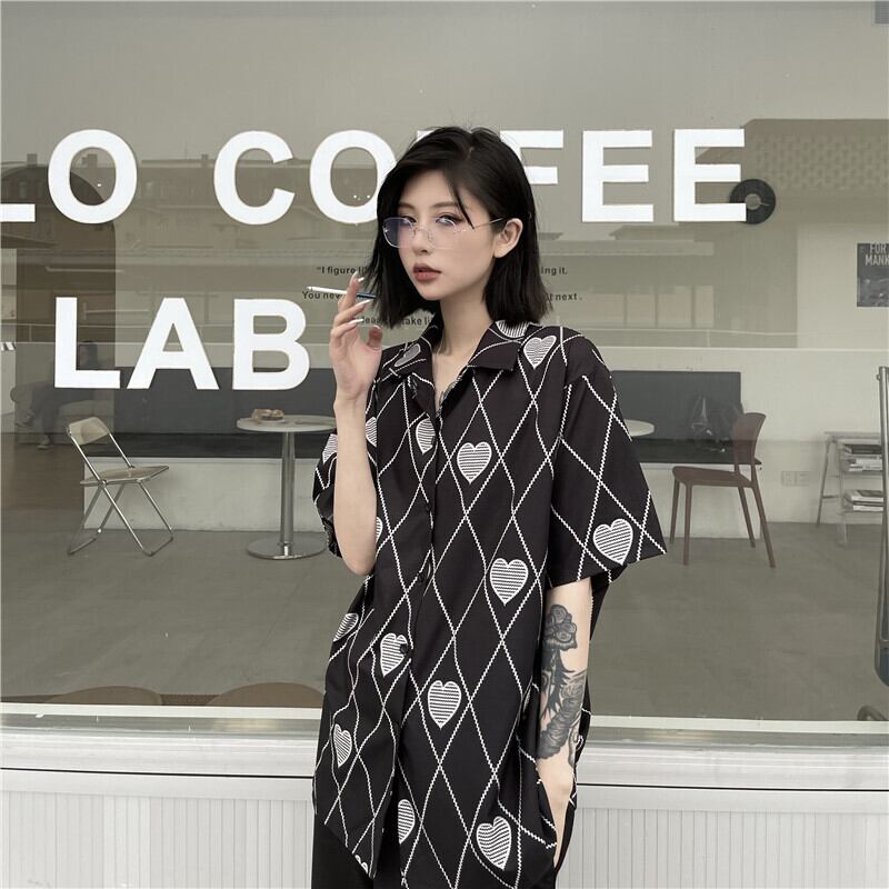 シャツ レディース夏服韓国ファッショントレンドダークスタイルハートプリントトップス ルーズ ストリート 夏物 Studios73416569846