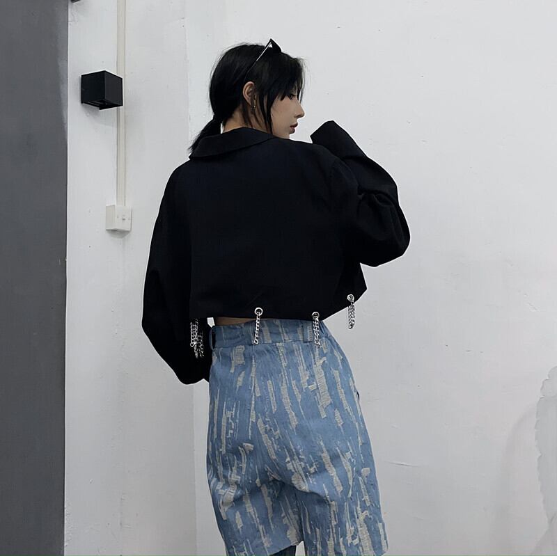 ジャケット レディース韓国ファッショントレンドスタイルチェーン ルーズ ストリート 原宿 ステッチ Studios29744822351