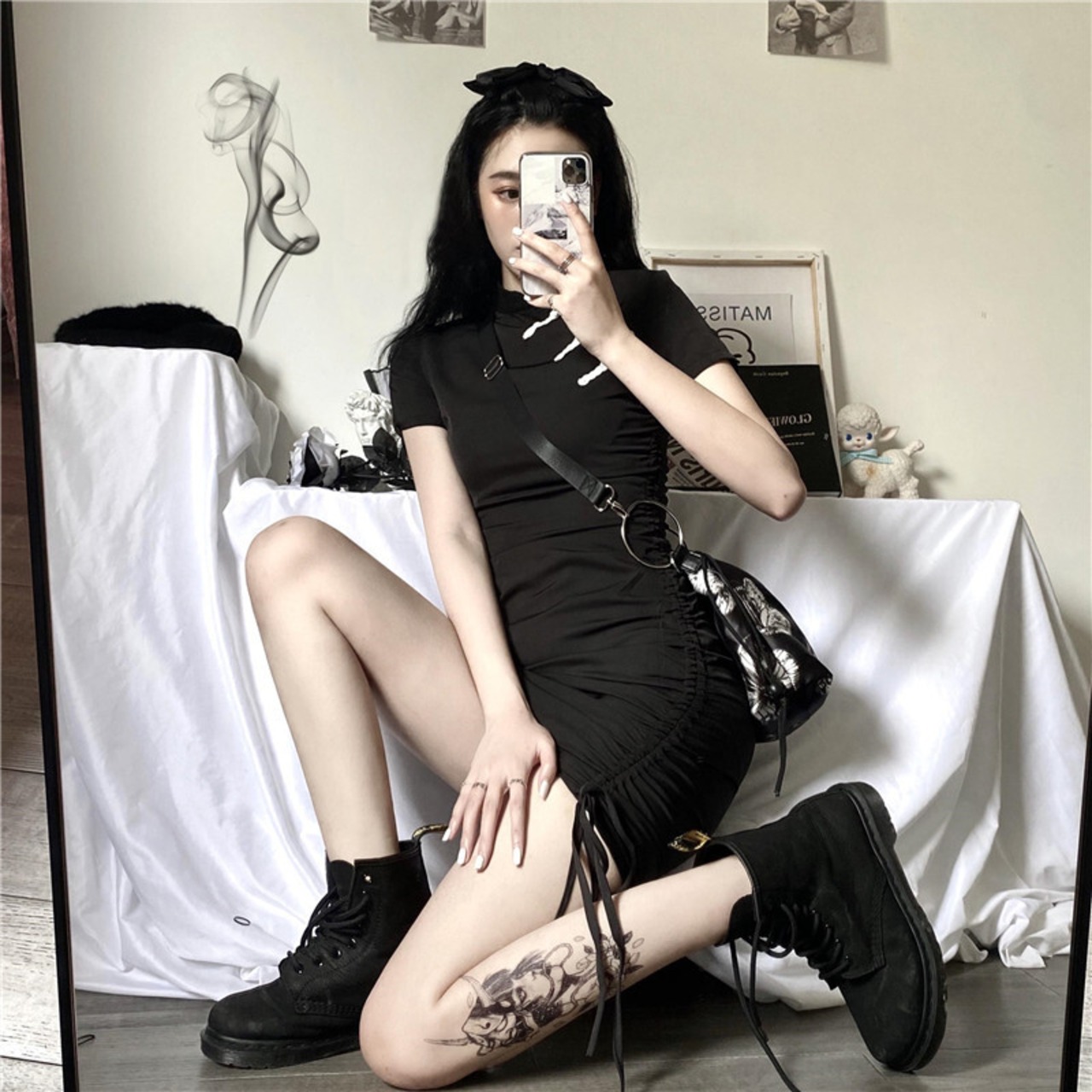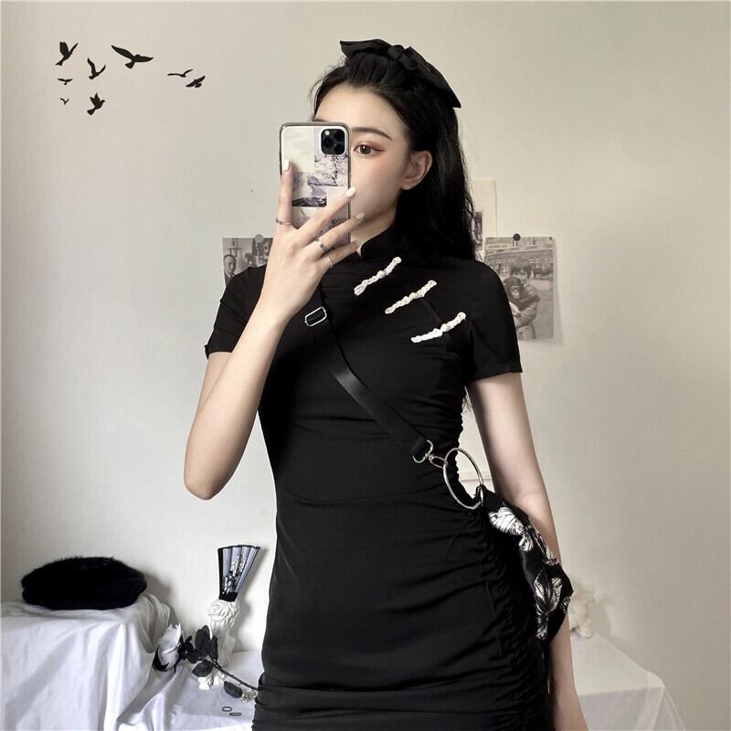 ワンピースレディース夏服韓国ファッショントレンドスタンダードギャザー薄手ストレッチスカート レトロ エラスティック 伸縮 夏物 スタイル Studios4067322261 | pLegLad Studios