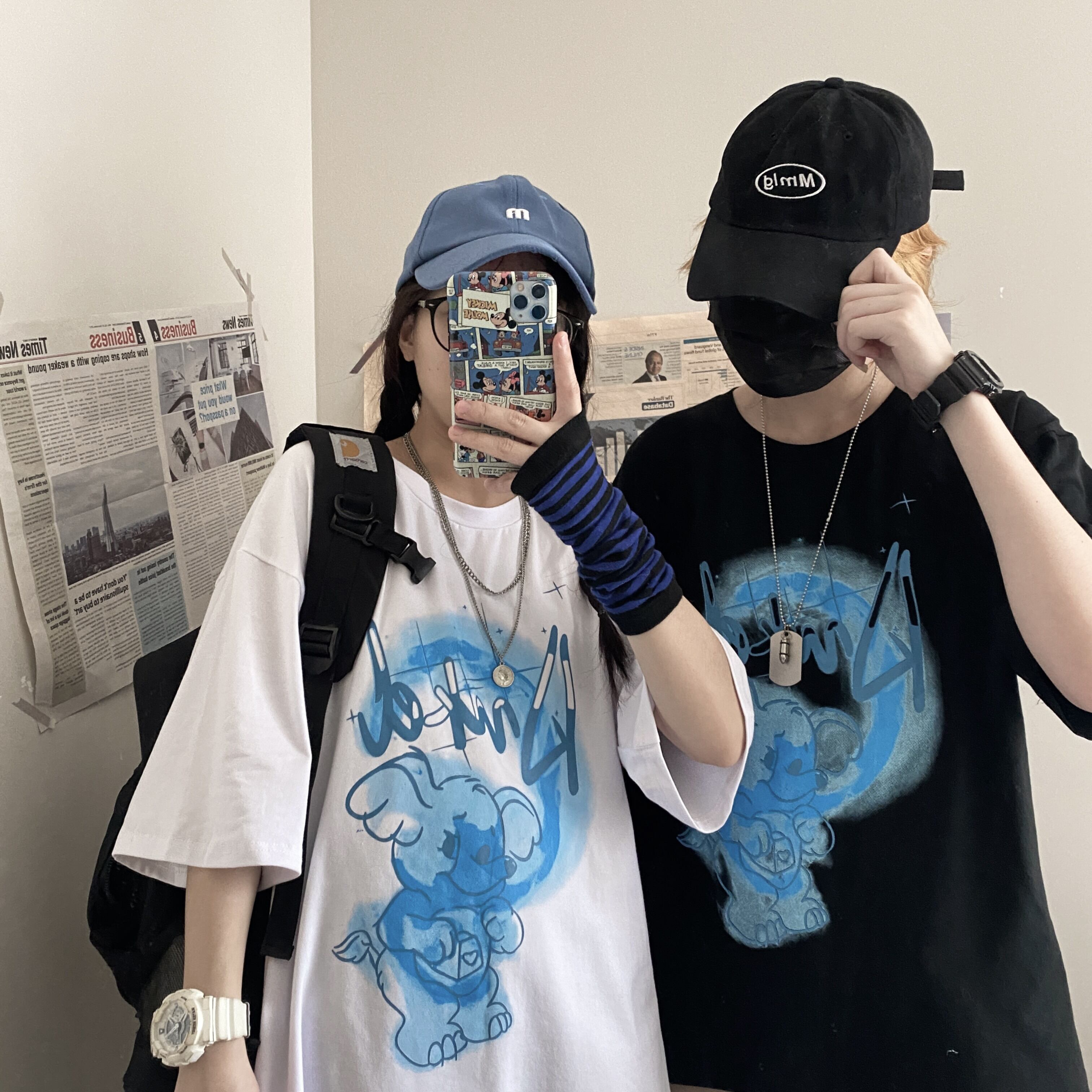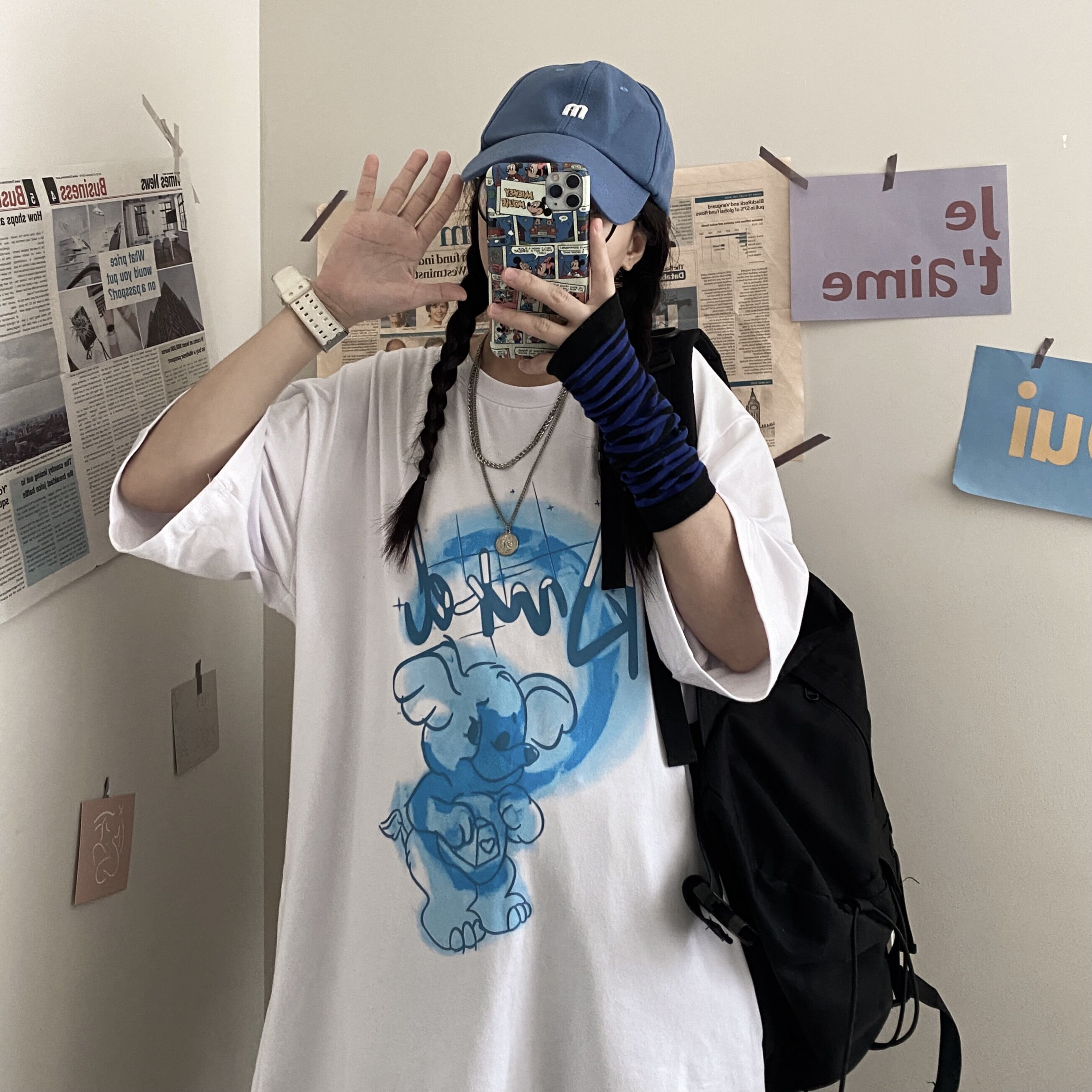 Tシャツレディース夏服韓国ファッショントレンドスタンダードブループリント柄ルーズトップス レトロ 夏物 スタイル Studios43855536555