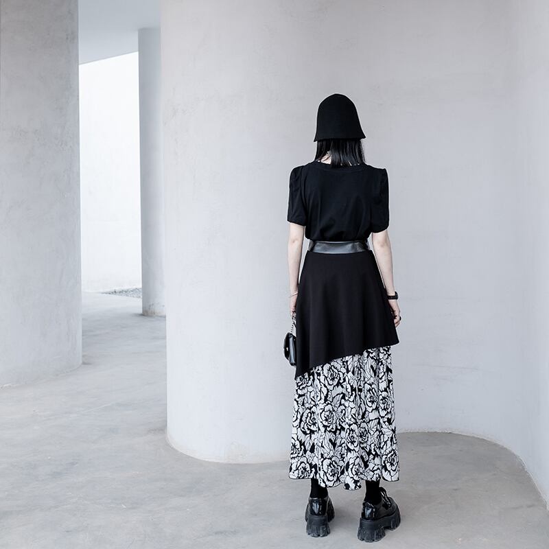 スタンダードスカート カラーベルト レディース夏服 レトロ 夏物 ハーネス SKY64002036914