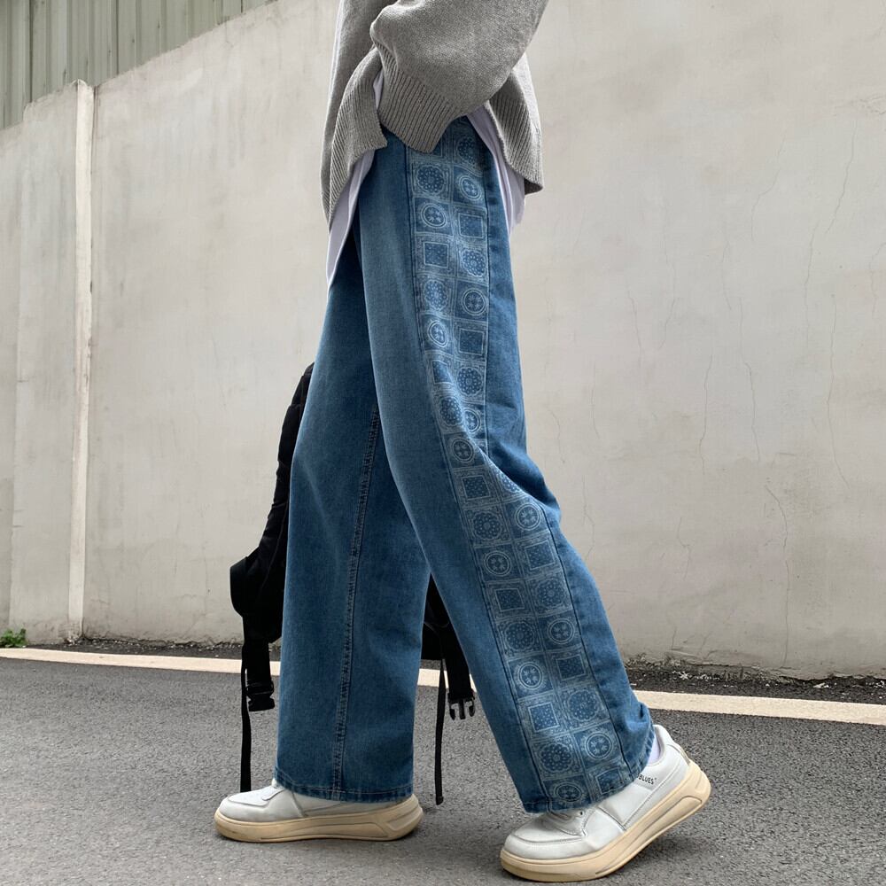 韓国ファッショントレンドスタイルスタンダードFlowerデザイン ストレッチウェストルーズジーンズ レディース レトロ エラスティック 伸縮 原宿 フラワーデザイン ステッチ ウエスト Studios73485252631 | pLegLad Studios