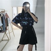 夏服韓国ファッショントレンドスタンダードButterflyデザイン プリント柄シャツ ルーズスタイルレディース レトロ 夏物 Studios97618640972