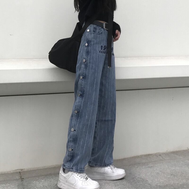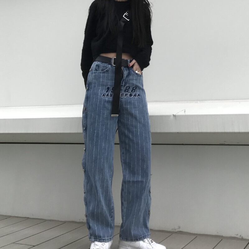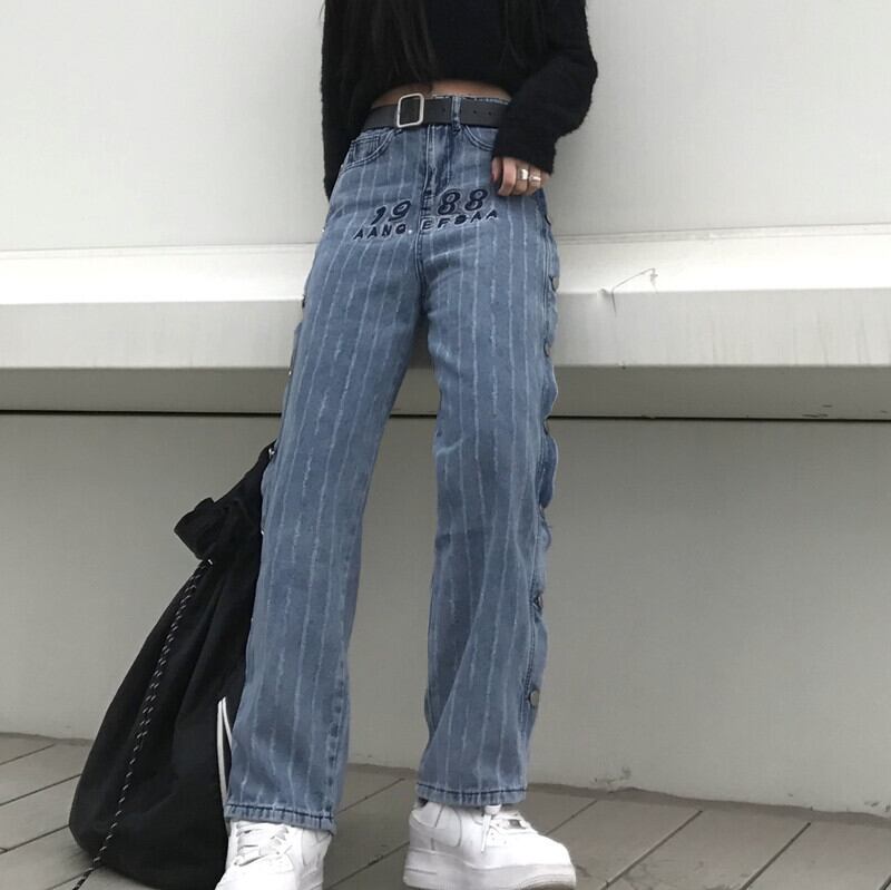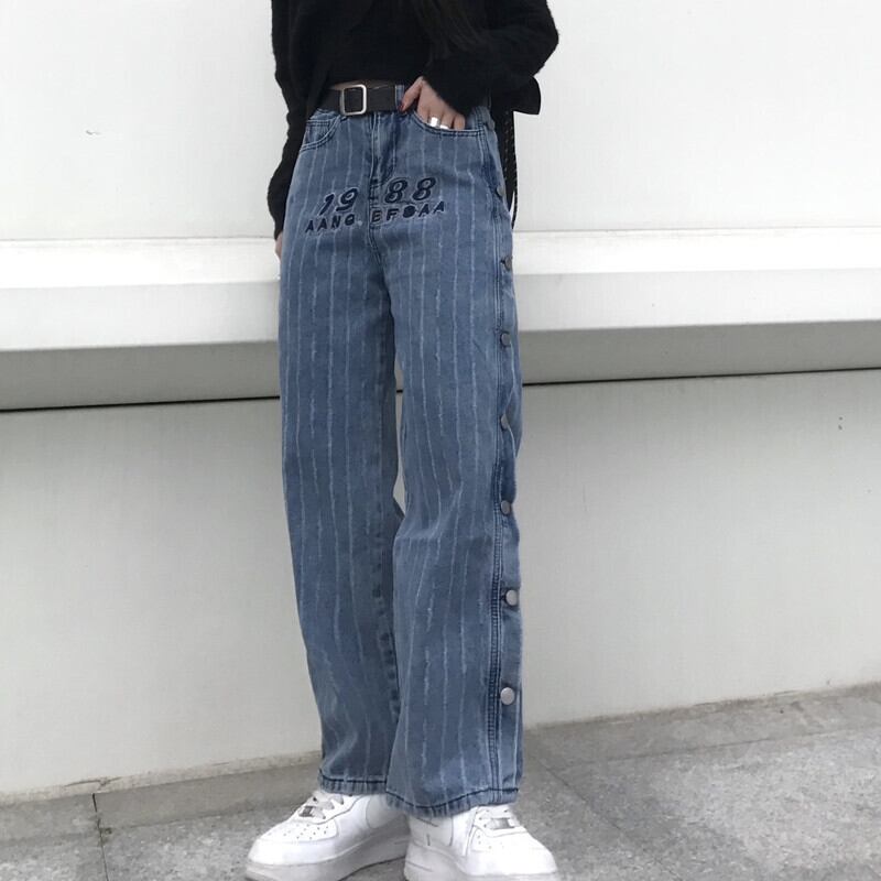 韓国ファッショントレンドスタンダードパンツ ハイウェストウェストカジュアルルーズジーンズ レトロ ストライプ スタイル ウエスト Studios76209464588 | pLegLad Studios