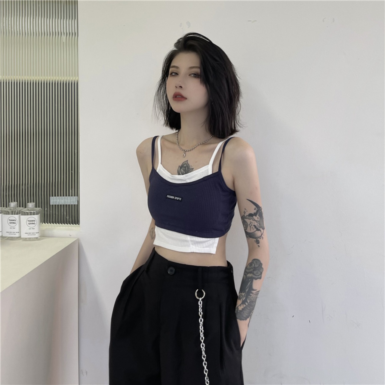 レディース夏服韓国ファッショントレンドスタンダードスリムトップス レトロ 夏物 ボーイズ スタイル Studios30681825837