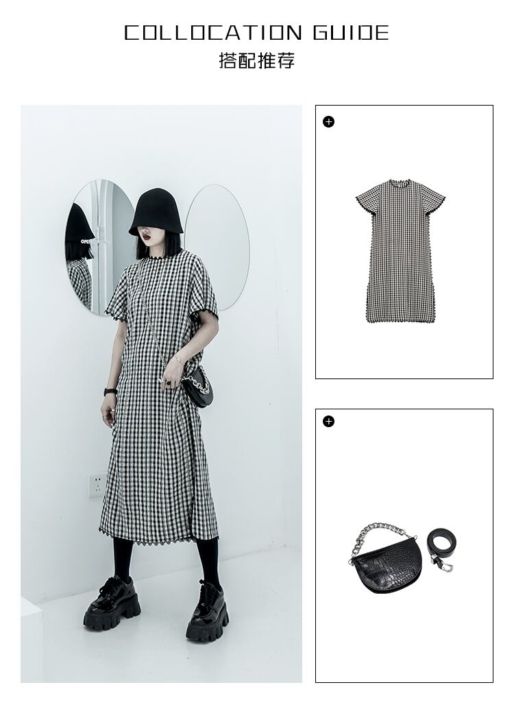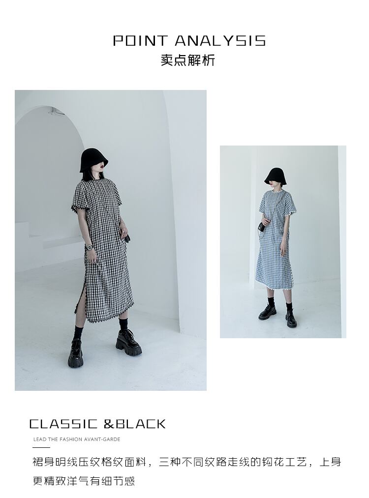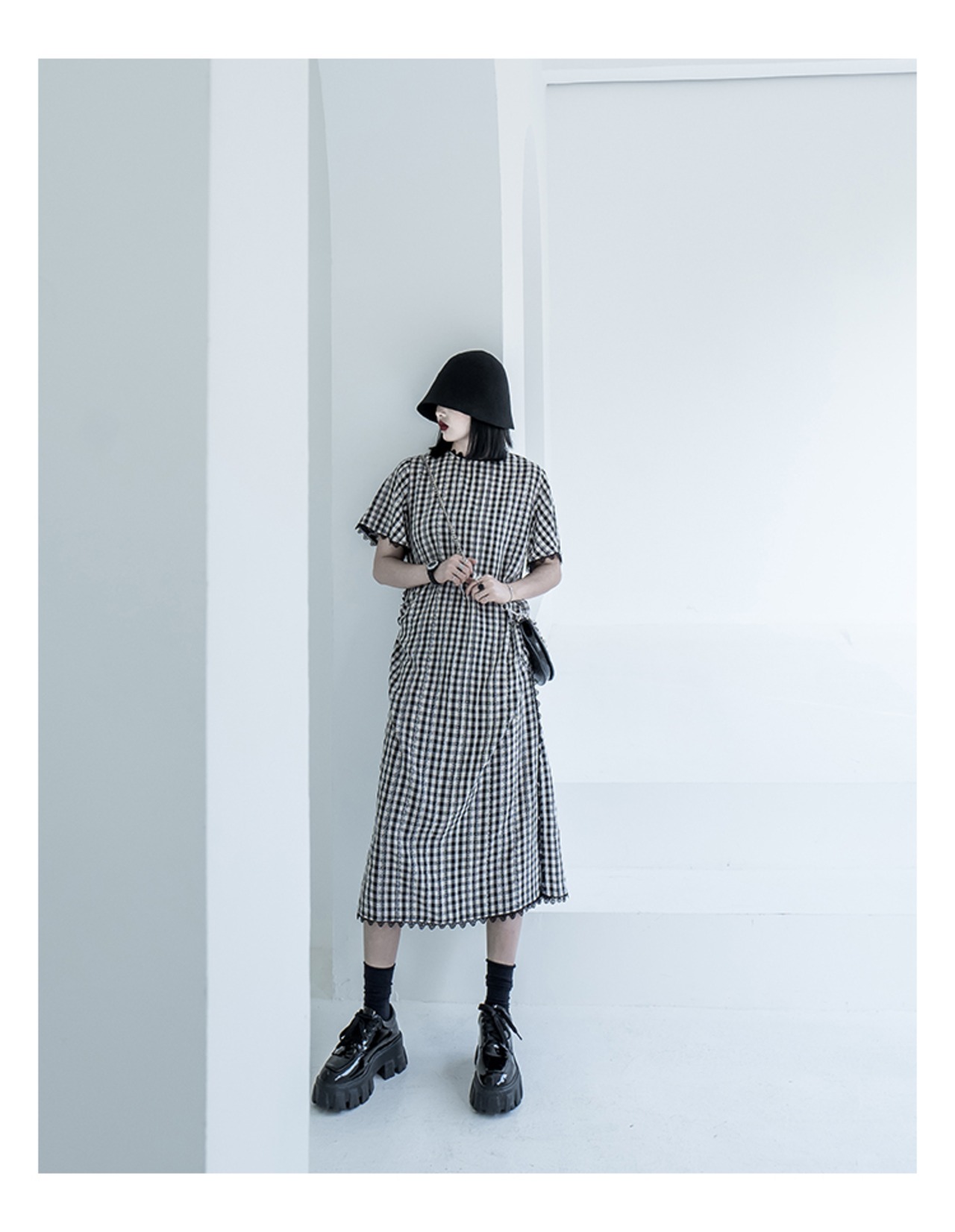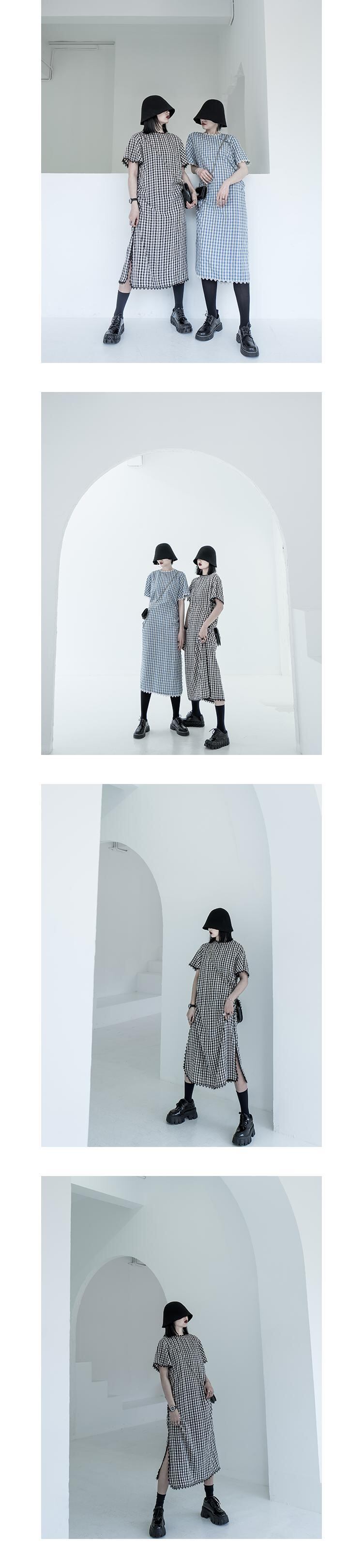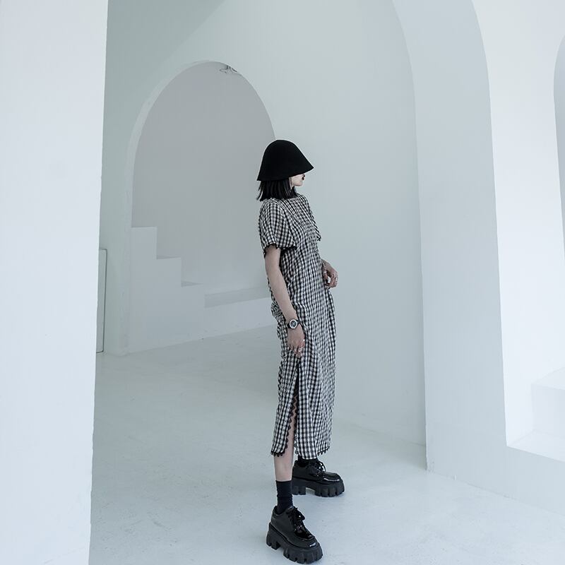 スタンダード格子柄ワンピーススリットロングスカート レトロ SKY58472957622