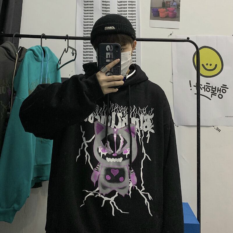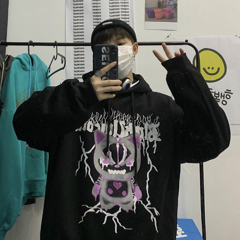 秋物ウィンター韓国ファッショントレンドスタイルダークプリント柄ルーズ厚みフードセーター ジャケット メンズレディース ストリート 原宿 オータム 冬物 Studios48581601946 | pLegLad Studios