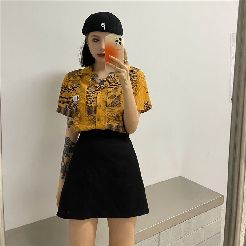 スタンダードシャツ レディース夏服韓国ファッショントレンドプリントスタイルルーズカラー レトロ 夏物 Studios42013441327