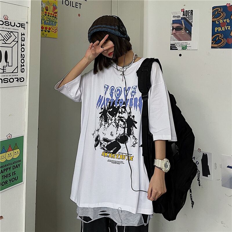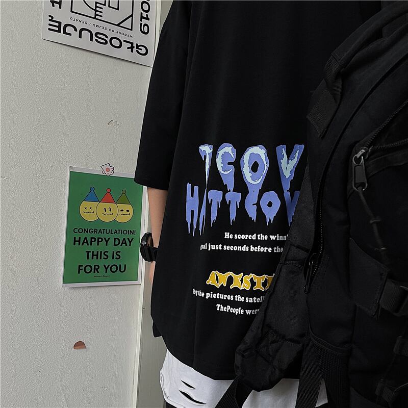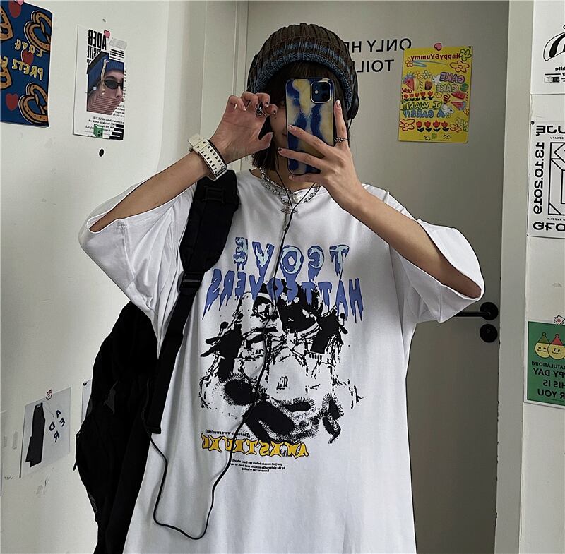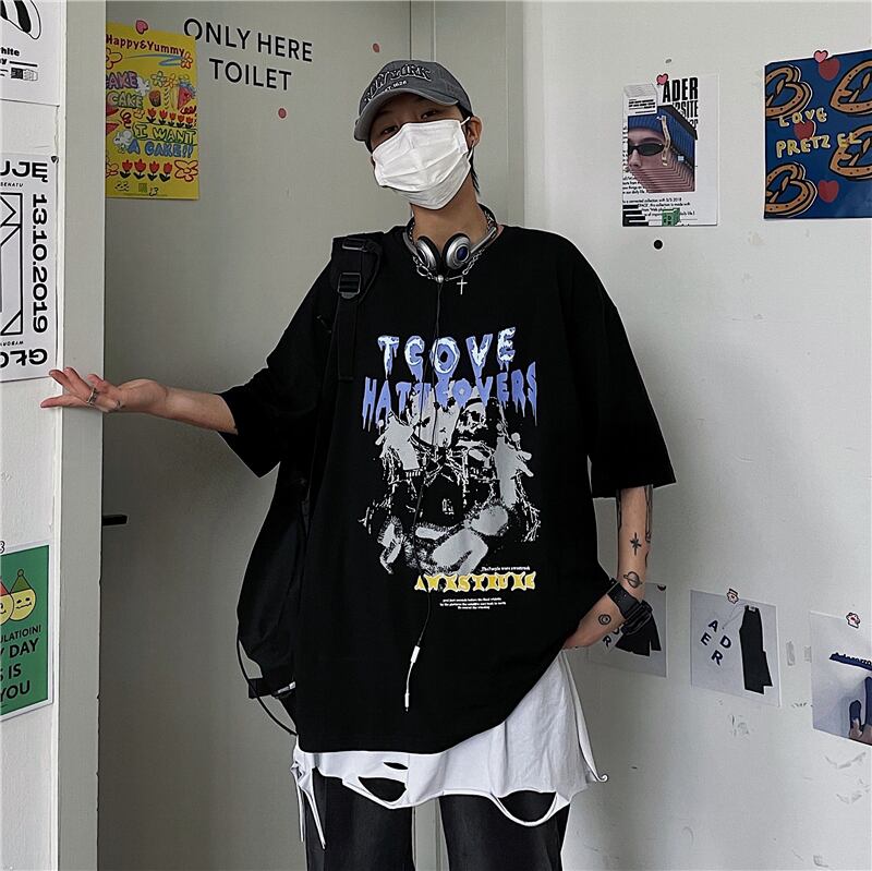 夏服韓国ファッショントレンドダークパターンプリントルーズTシャツメンズレディース ストリート 夏物 Studios51878607462