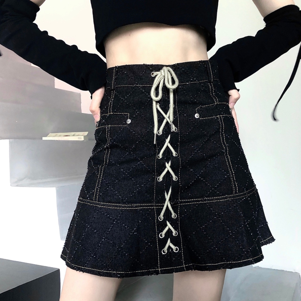 スカート レディース夏服韓国ファッショントレンドハイウェストウェストAライン薄手カジュアル 夏物 スタイル ウエスト Studios10625230521
