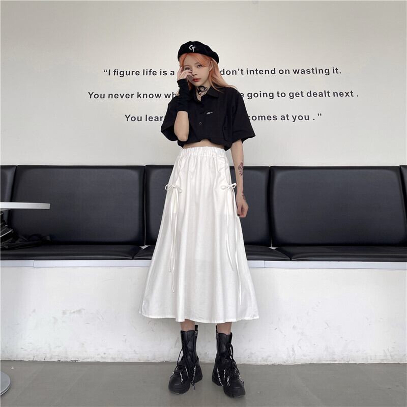 スカート レディース夏服韓国ファッショントレンドスタンダードハイウェストウェストAラインレース レトロ 夏物 レースアップ スタイル ウエスト ミドル丈 Studios57069605416