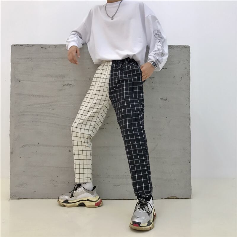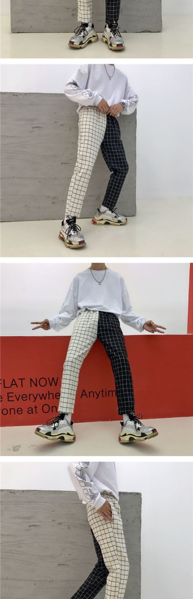 韓国ファッションスリムスタンダード格子柄カジュアルパンツ メンズレディース レトロ 原宿 ステッチ Studios11870855468