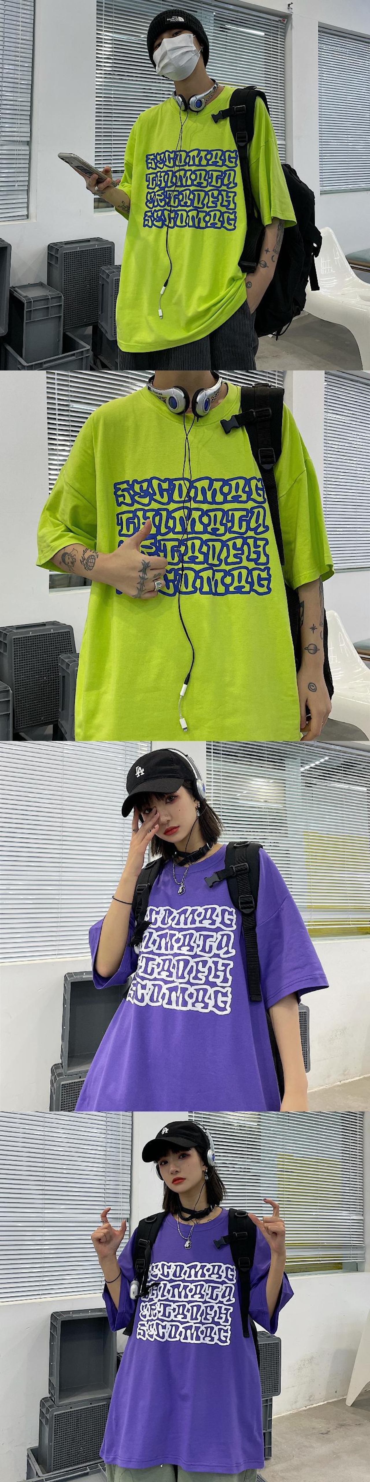 Tシャツレディース夏服韓国ファッショントレンドスタンダードプリントルーズラウンドネックトップス レトロ 夏物 Oネック スタイル Studios19493511111 | pLegLad Studios