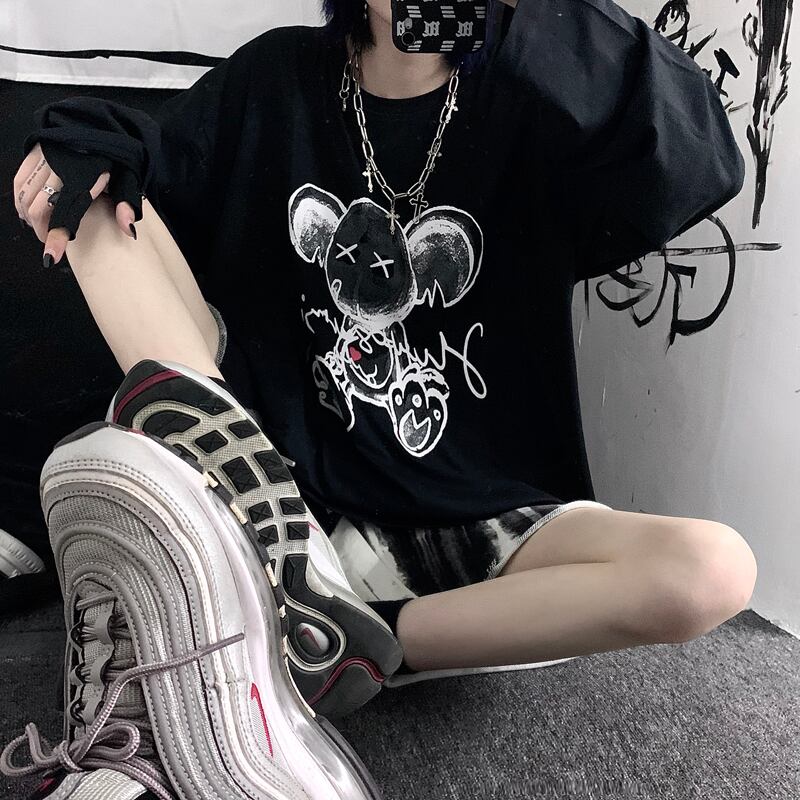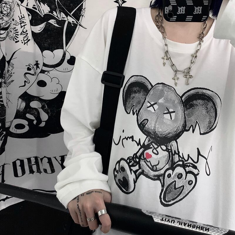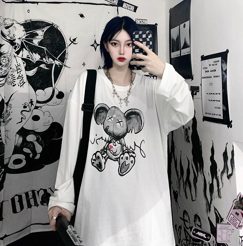 秋物韓国ファッショントレンドスタイルダークプリントルーズTシャツシャツ トップス ゆったりメンズレディース ロング ストリート 原宿 オータム 長袖 Studios15330383525