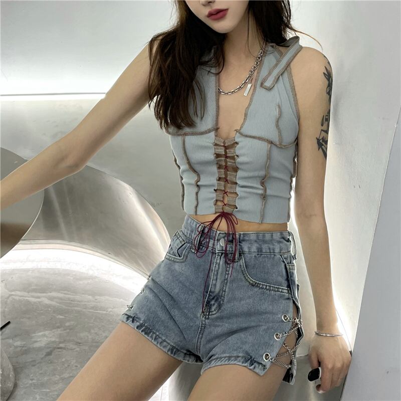 夏服韓国ファッショントレンドサイドスリットメタルチェーン ハイウェストウェスト薄手ショーツ レディース 夏物 スタイル ウエスト Studios74367225401