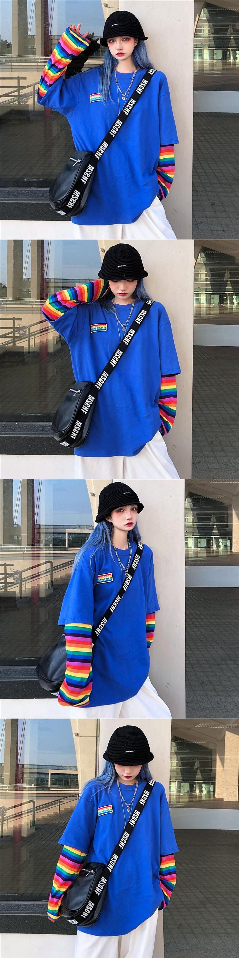 トレンドスタイルスタンダードスリーブルーズメンズレディース ロング レトロ シャツ ストリート 原宿 Tシャツ ステッチ 長袖 Studios24684014961