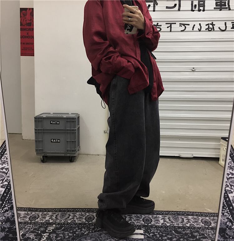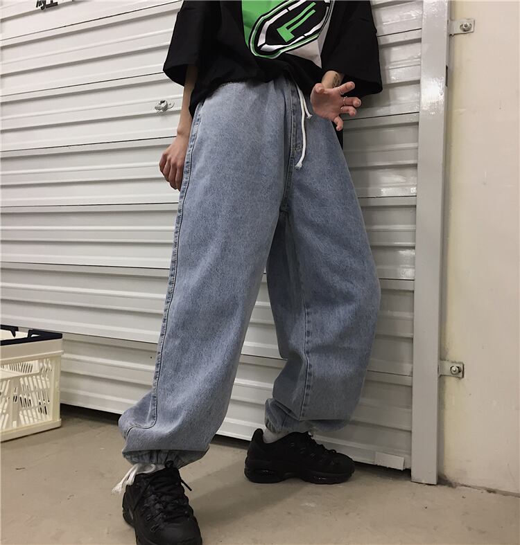 トレンドスタンダードルーズパンツ ストレッチウェストジーンズ メンズレディース レトロ ストリート エラスティック 伸縮 ウエスト Studios72471860768 | pLegLad Studios