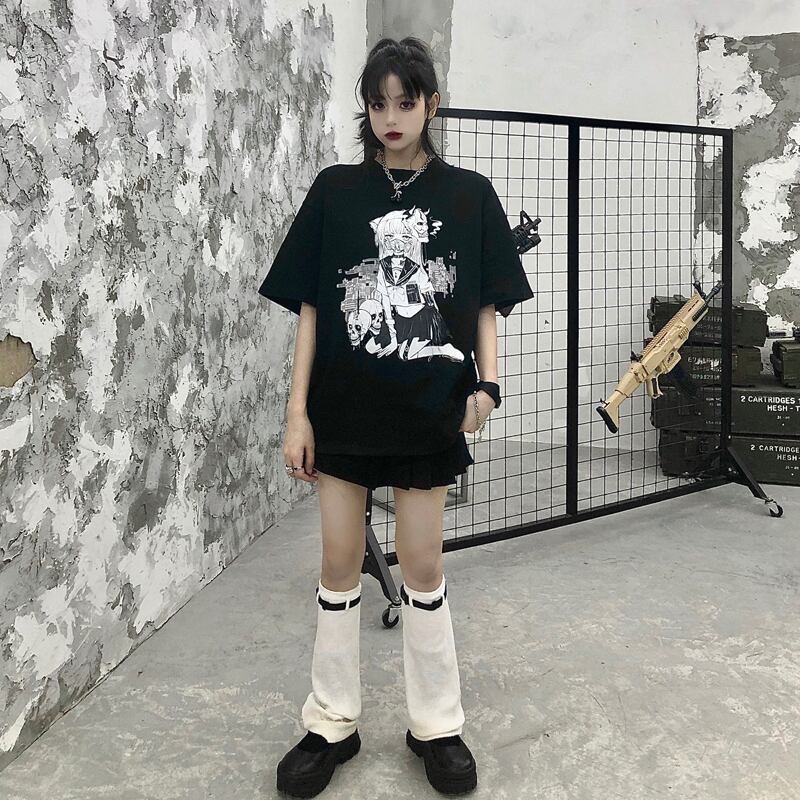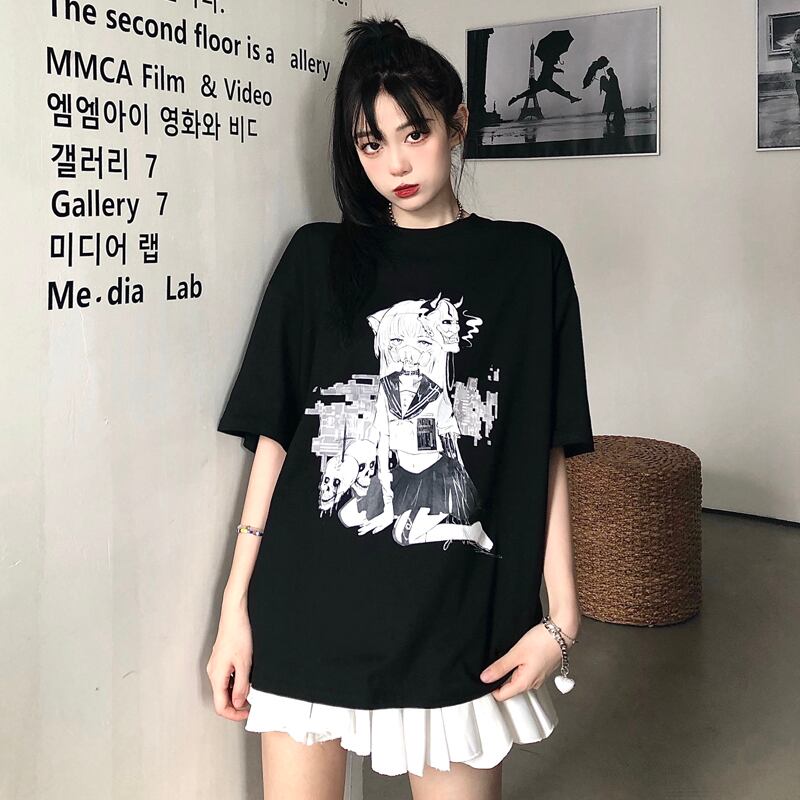 夏服韓国ファッショントレンドスタンダードダークプリントカジュアルルーズTシャツレディース レトロ 夏物 スタイル Studios24751472203
