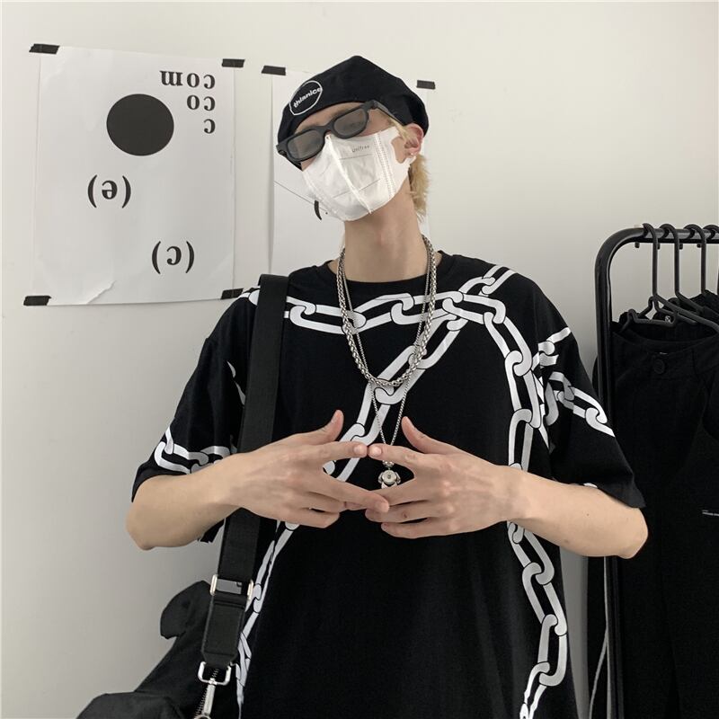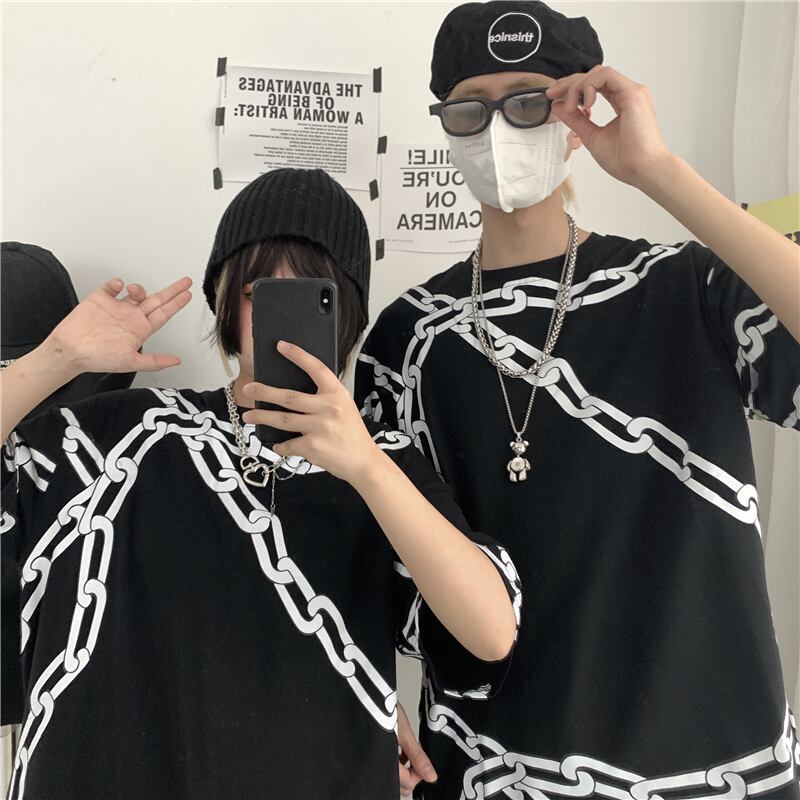 夏服韓国ファッショントレンドダークカジュアルルーズチェーン プリントメンズレディース シャツ 夏物 Tシャツ Studios33058696354