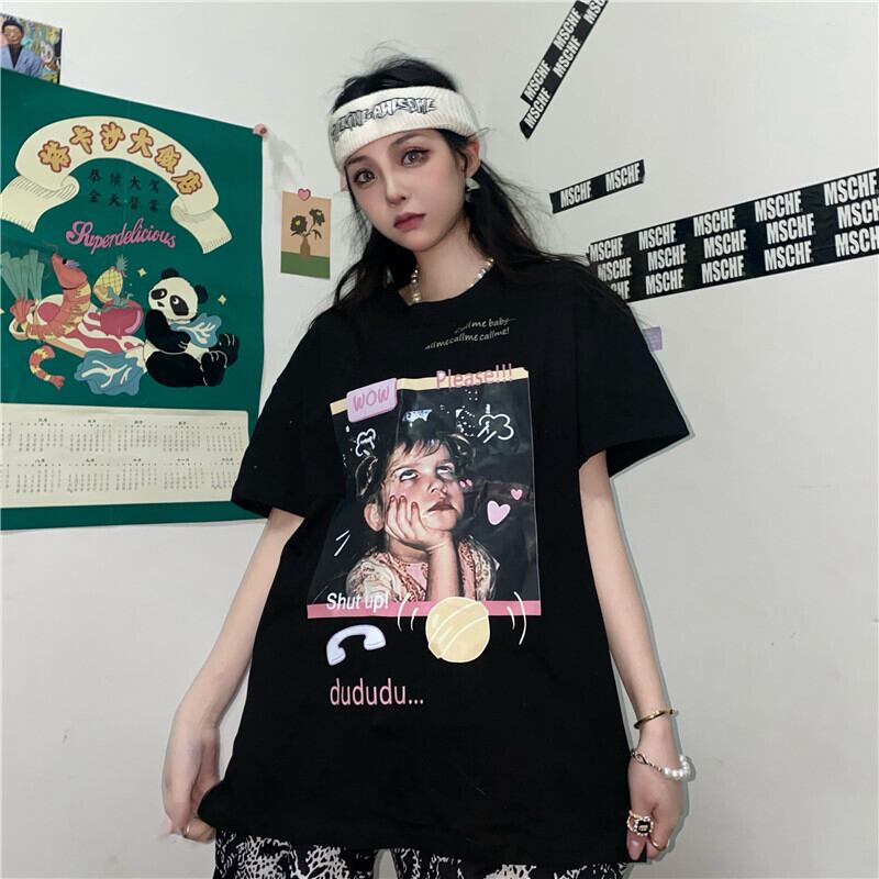 夏服韓国ファッショントレンドスタンダードプリントルーズTシャツメンズレディース レトロ 夏物 Studios16911980250