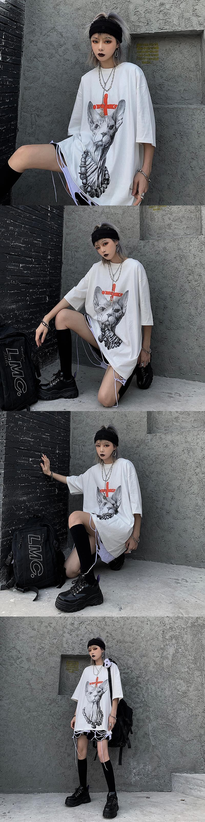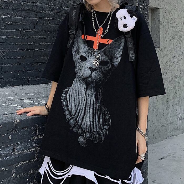 夏服韓国ファッショントレンドスタイルダークプリント柄ルーズラウンドネックTシャツメンズレディース ストリート 夏物 Oネック Studios73326858715