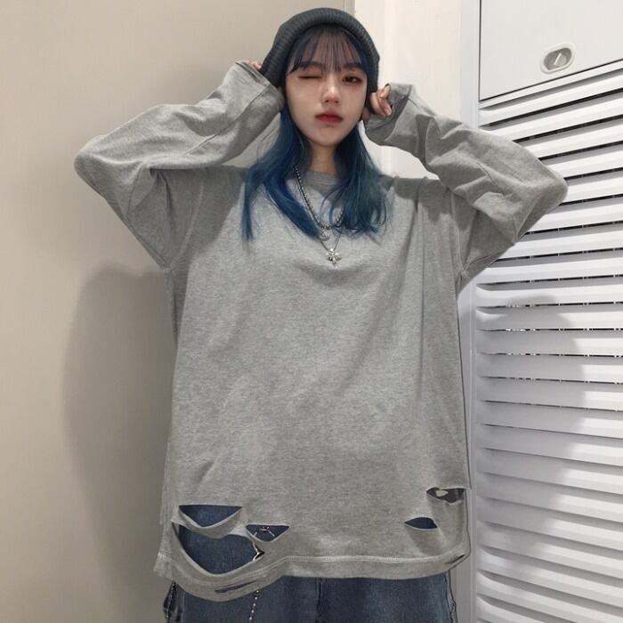 秋物韓国ファッショントレンドスタイルスタンダードゆったりシャツ ソリッド カラールーズTシャツトップス ロング レトロ 原宿 オータム ソリッドカラー 長袖 Studios9797235403 | pLegLad Studios