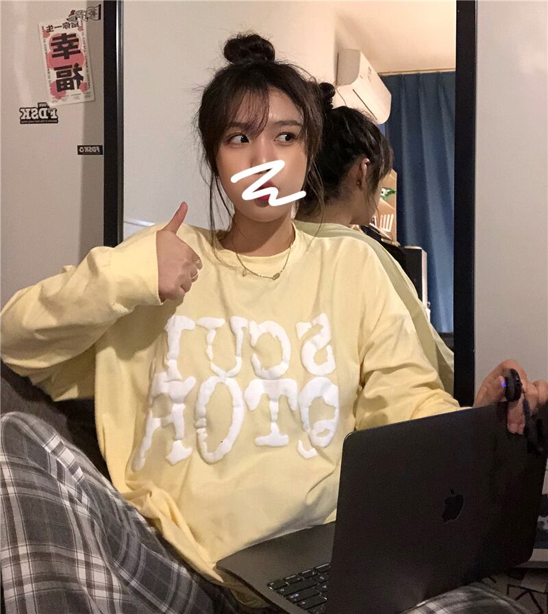 夏服韓国ファッショントレンドブルーホワイトルーズラウンドネック長袖スリーブTシャツレディース ロング 夏物 Oネック スタイル Studios32707323376