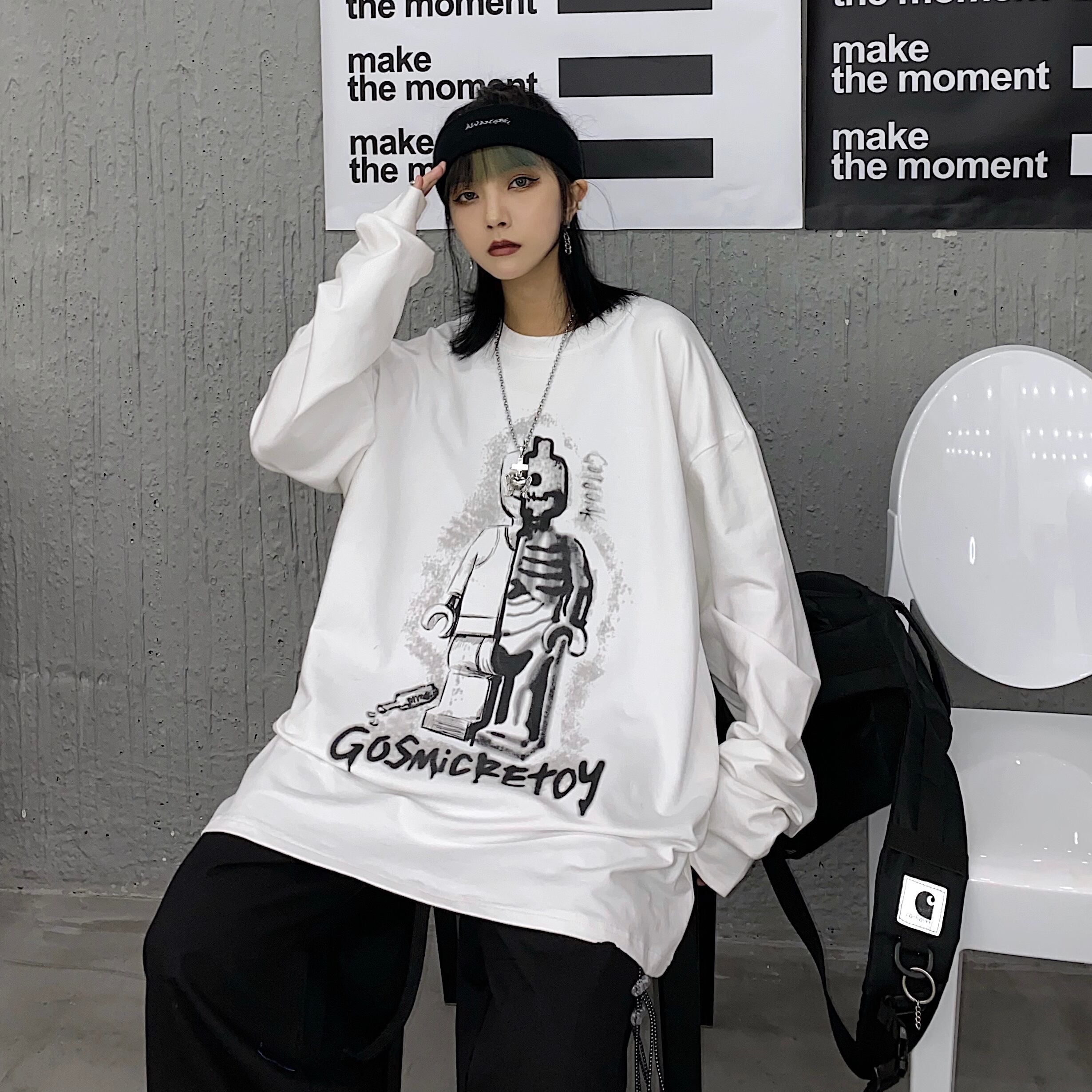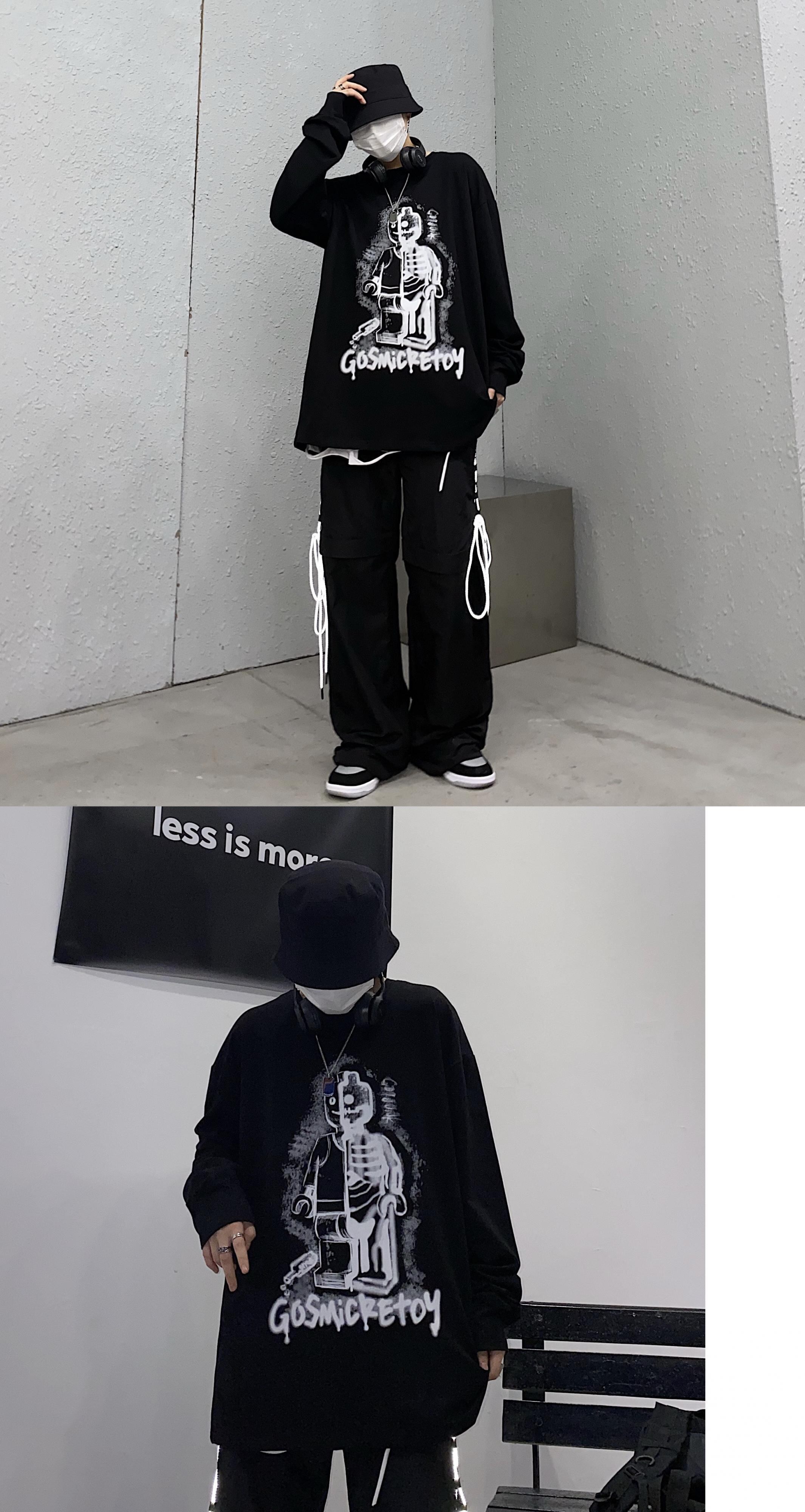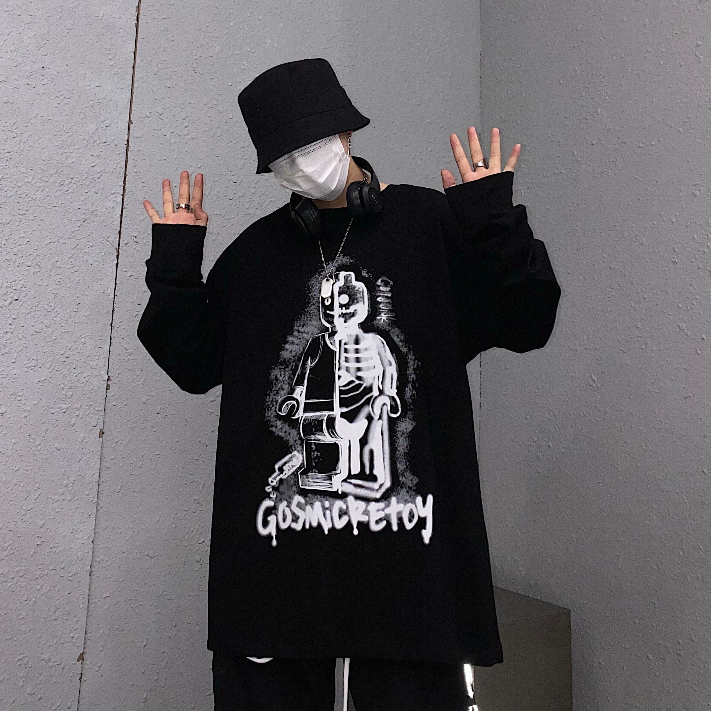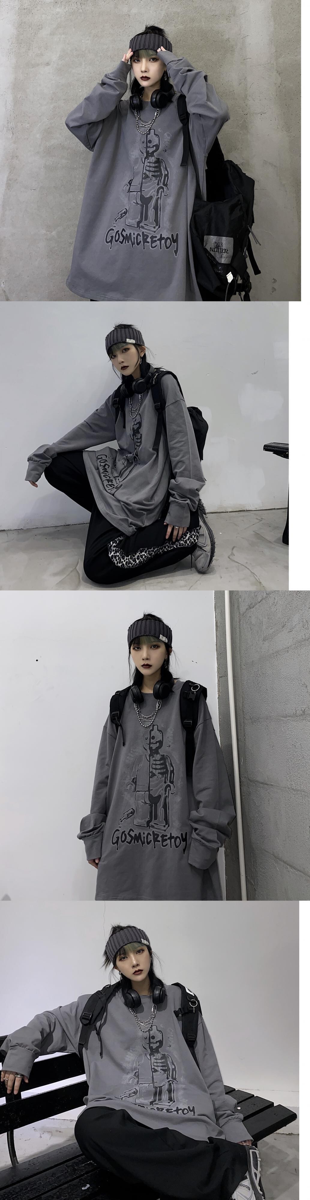 スプリング韓国ファッショントレンドプリントルーズラウンドネック長袖スリーブ薄手セーター メンズレディース ロング 春物 Oネック Studios14650842766 | pLegLad Studios