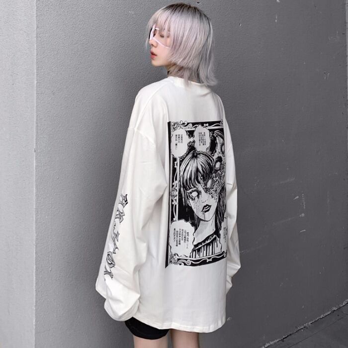 スプリング秋物韓国ファッショントレンドスタイルスタンダードダークプリント柄ルーズゆったりTシャツメンズレディース ロング レトロ ストリート 原宿 春物 オータム 長袖 Studios93142569651 | pLegLad Studios