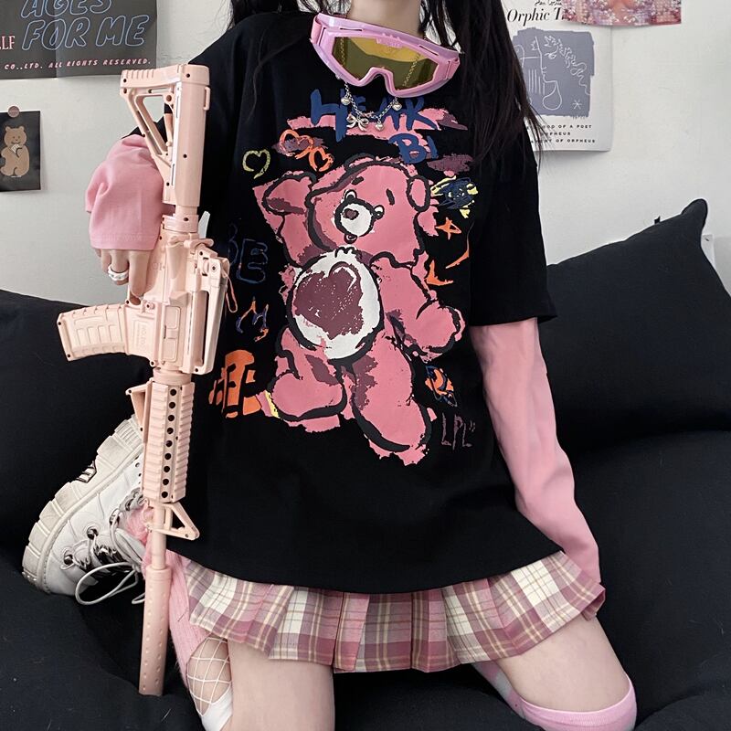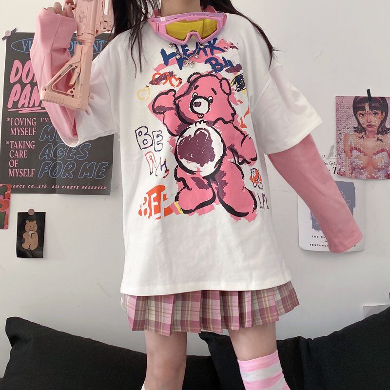 スプリング韓国ファッショントレンドプリントTシャツレディース ロング 春物 ステッチ 長袖 Studios25946653358