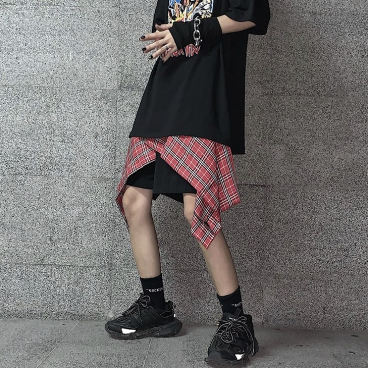 トレンド格子柄ウェストメンズレディース レッド ウエスト Studios27422334820
