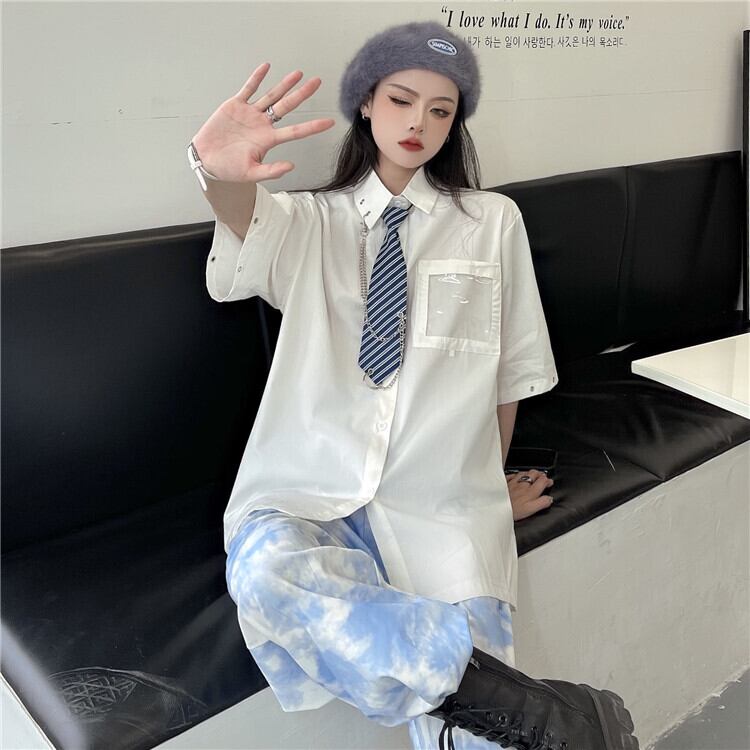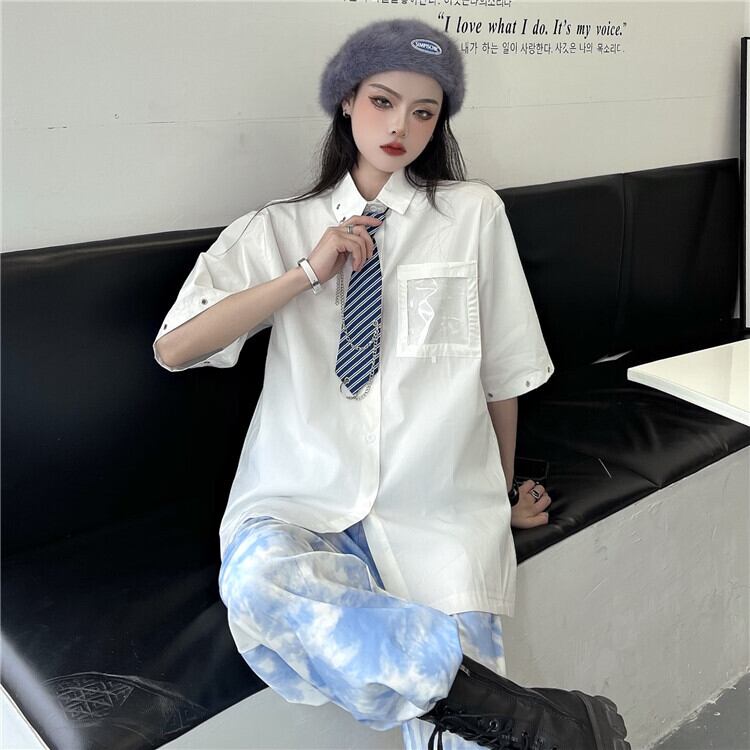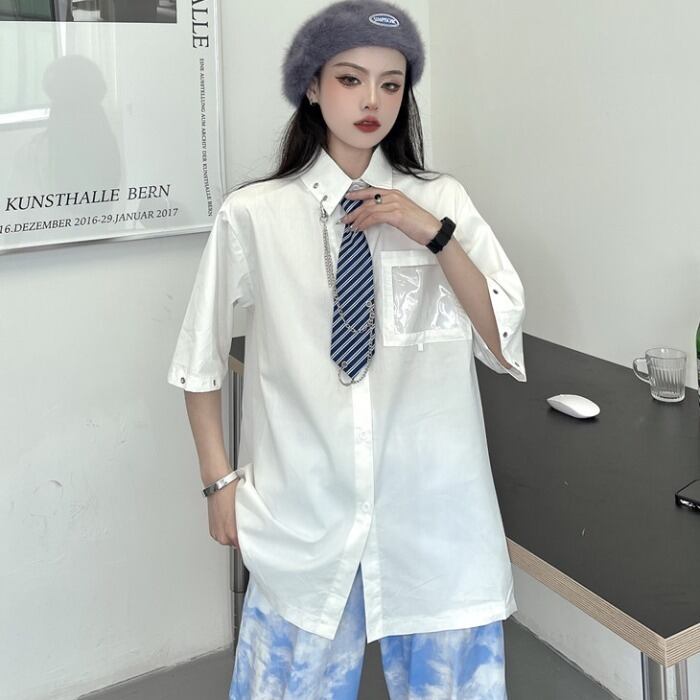 シャツ レディース夏服韓国ファッショントレンドスタンダードポケットチェーン ルーズ薄手 レトロ 夏物 スタイル Studios57367821282