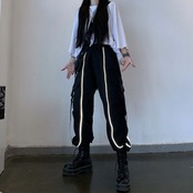 トレンドスタイルストライプパンツハイウェストウェストルーズカジュアルレギンス パンツ メンズレディース ストリート 原宿 ウエスト Studios67779921479 | pLegLad Studios
