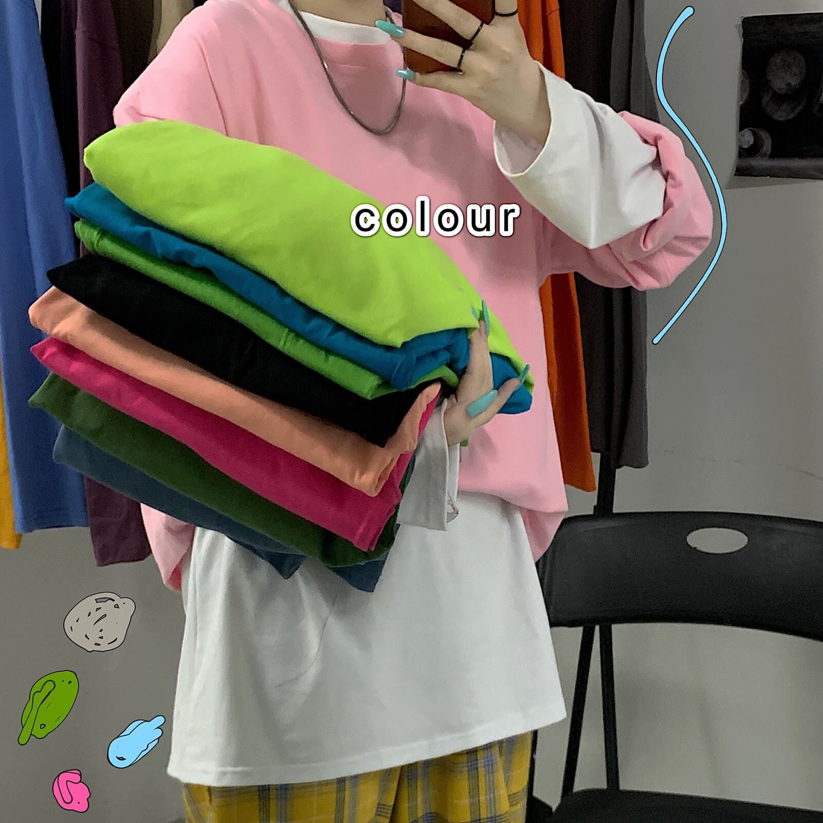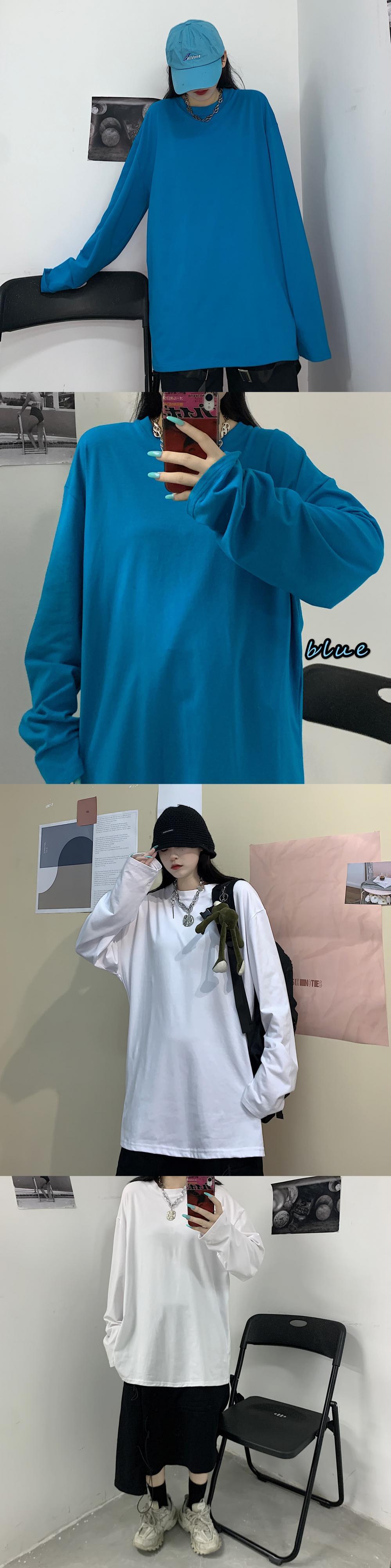秋物韓国ファッショントレンドスタイルベーシックソリッド カラーゆったりシャツ トップス ルーズTシャツメンズレディース ロング ストリート 原宿 オータム ソリッドカラー 長袖 Studios38433204966 | pLegLad Studios