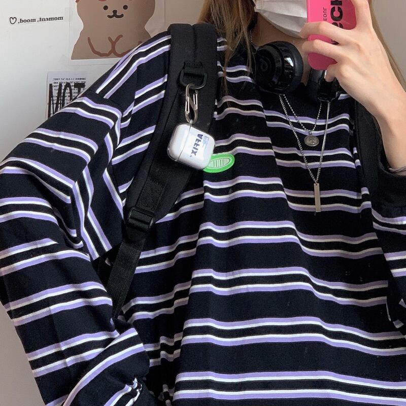 秋物韓国ファッショントレンドスタイルスタンダードストライプ薄手セーター ルーズラウンドネックジャケット レディース ロング レトロ 原宿 オータム Oネック 長袖 Studios10984873214