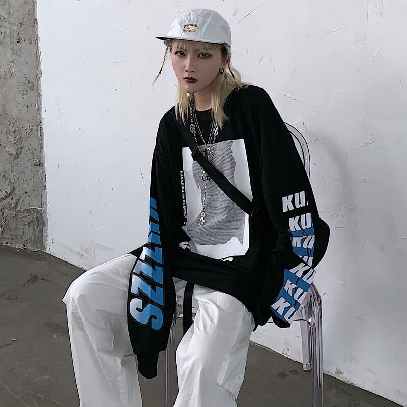 秋物韓国ファッショントレンドスタイルプリントTシャツルーズ薄手セーター ジャケット レディース ロング ストリート 原宿 オータム 長袖 Studios69221352975