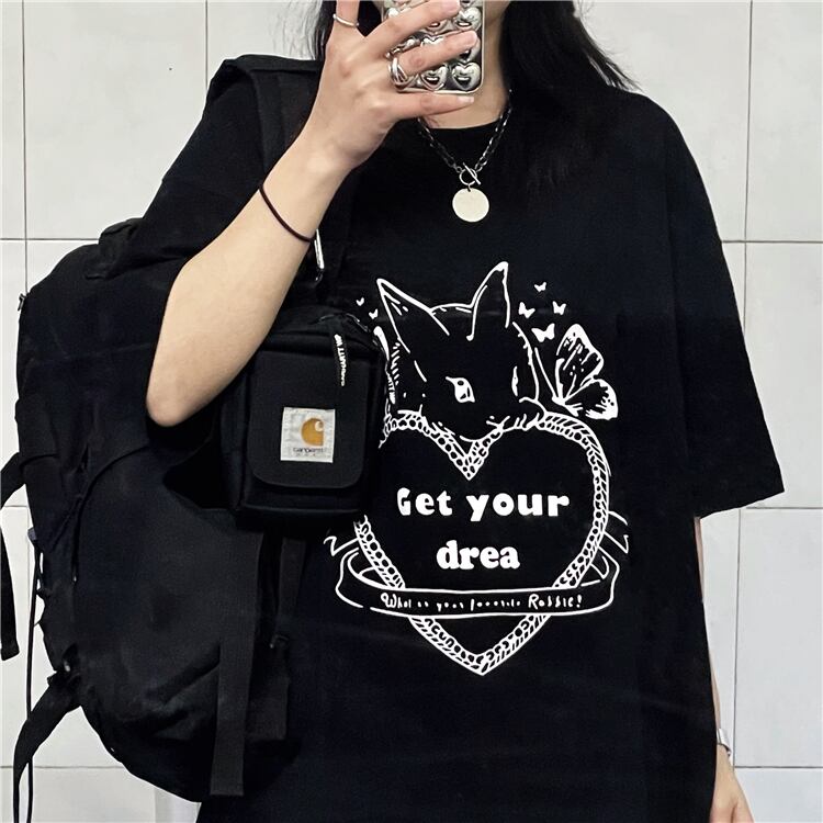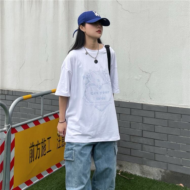 夏服韓国ファッショントレンドスタンダードプリントラウンドネックルーズ半袖スリーブTシャツメンズレディース ショート レトロ ハーフスリーブ 夏物 Oネック スタイル Studios39152877815