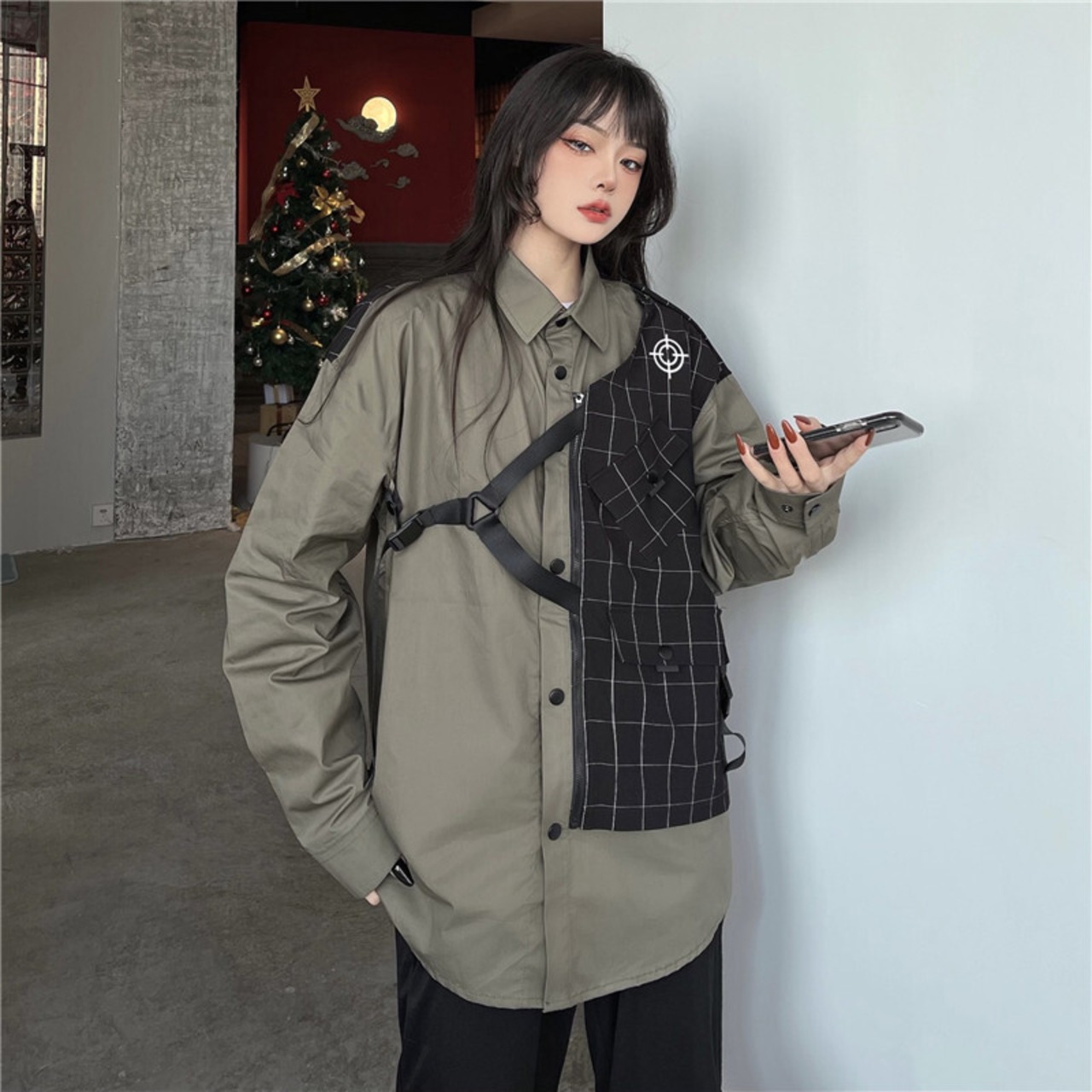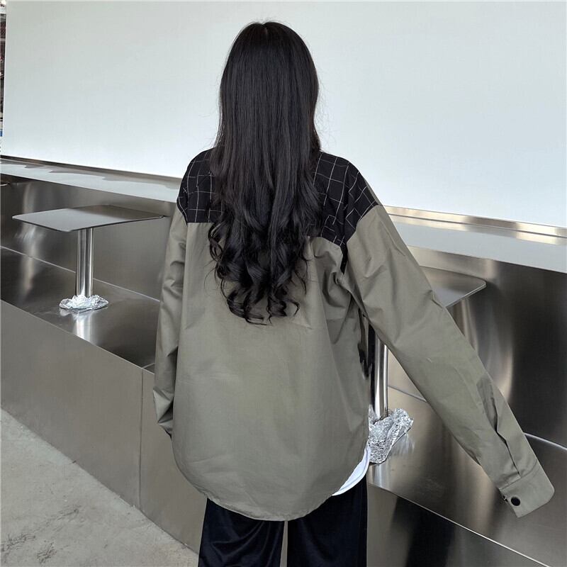 スプリング韓国ファッショントレンドシャツ グリーンルーズメンズレディース ロング 春物 ボーイズ 長袖 Studios3091350193
