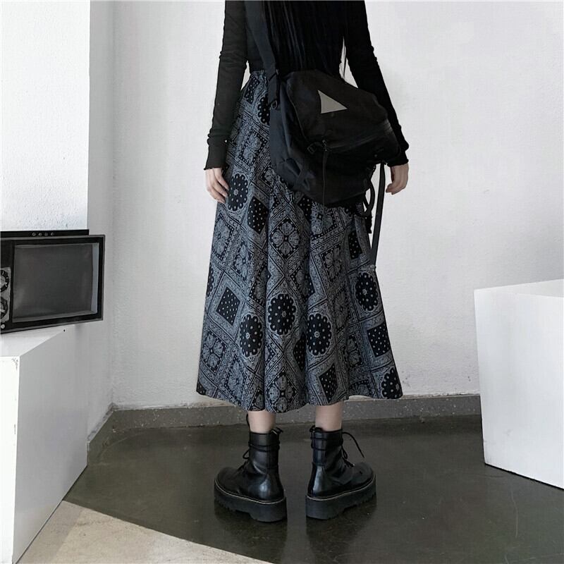 夏服韓国ファッショントレンドスタンダードFlowerデザイン スカート ルーズハイウェストウェストAラインプリーツレディース レトロ ストリート 夏物 フラワーデザイン ウエスト ミドル丈 Studios29122461967