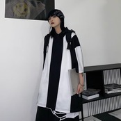夏服韓国ファッショントレンドスタンダードブラックホワイトストライプルーズTシャツメンズレディース レトロ 夏物 ステッチ Studios10888180595
