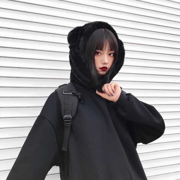 秋物ウィンタートレンドスタイルスタンダードダークファー厚みルーズフードセーター レディース レトロ ストリート 原宿 オータム 冬物 Studios89872134491