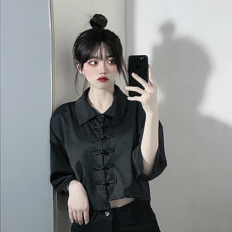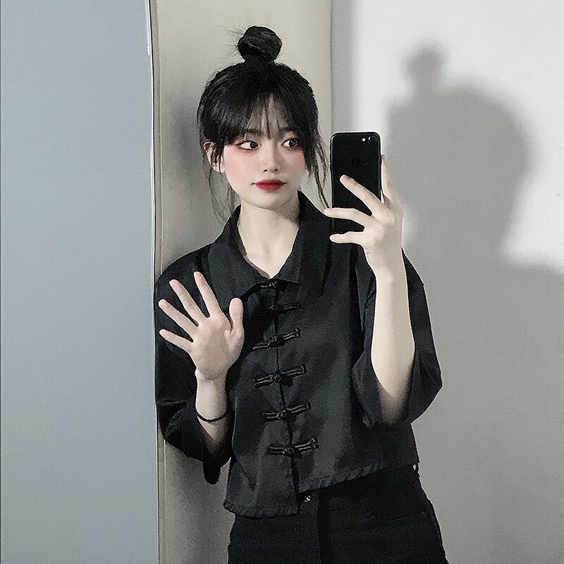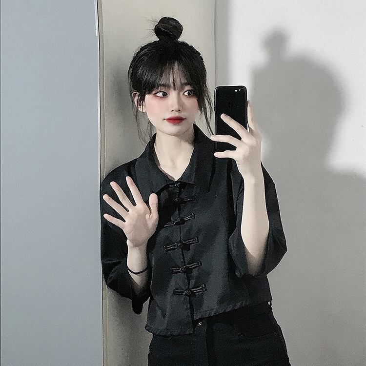 スリーブシャツ レディース夏服韓国ファッショントレンドスタンダードダークボタンシフォントップス レトロ 夏物 スタイル Studios43182914832