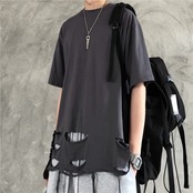 夏服韓国ファッショントレンドスタンダードソリッド カラールーズカジュアルTシャツメンズレディース レトロ 夏物 ソリッドカラー スタイル Studios21190760837