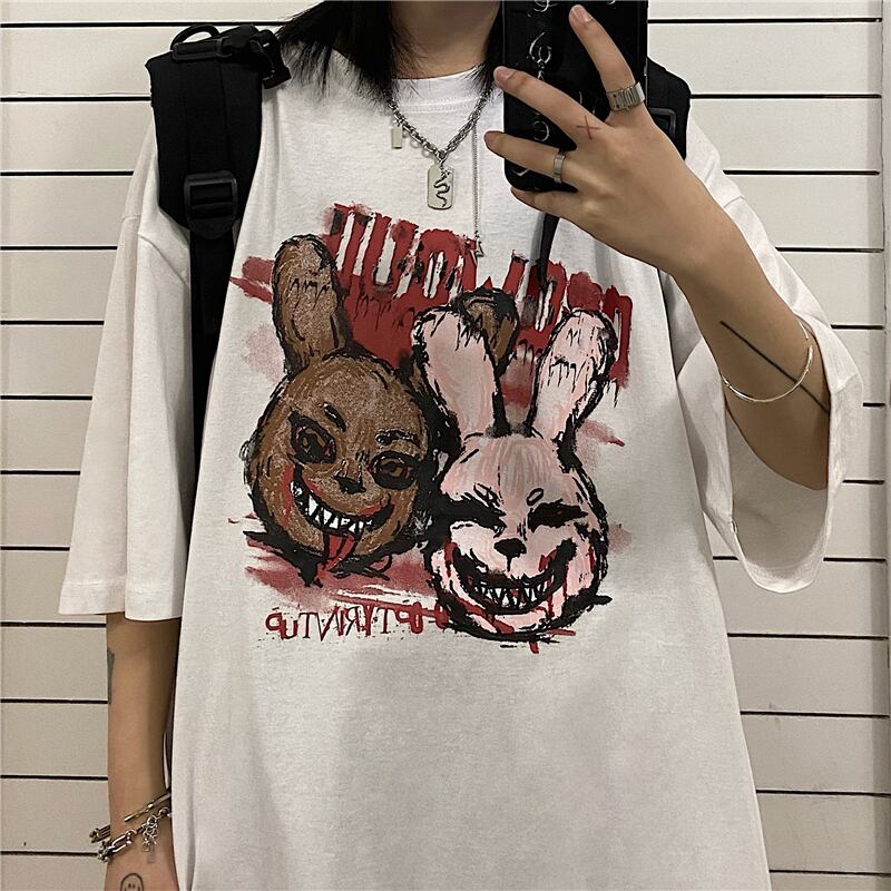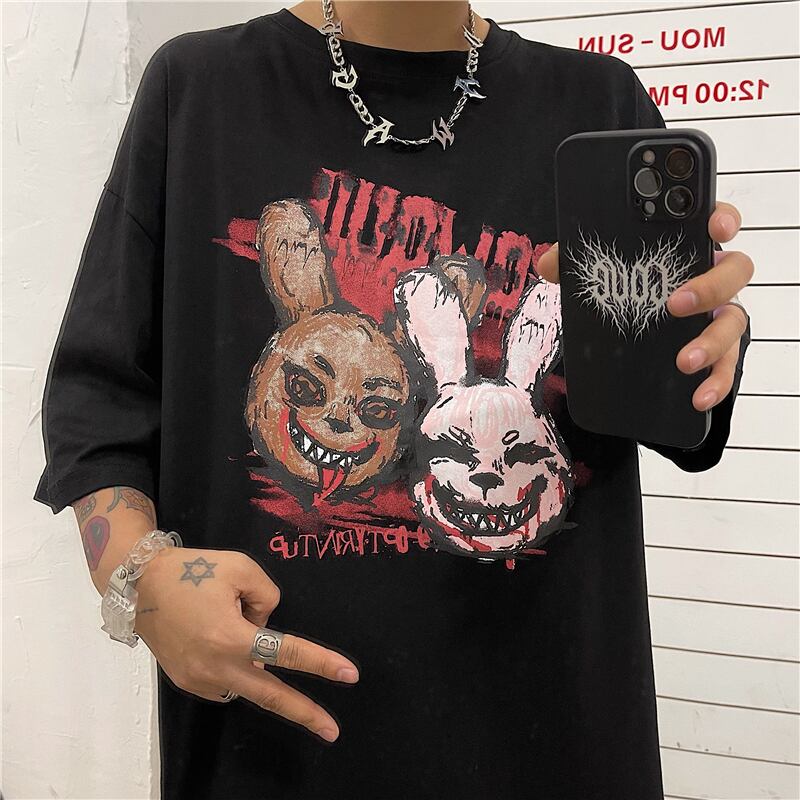 夏服韓国ファッショントレンドスタンダードプリント柄ラウンドネックシャツ ルーズTシャツメンズレディース レトロ 夏物 Oネック スタイル Studios23712351917