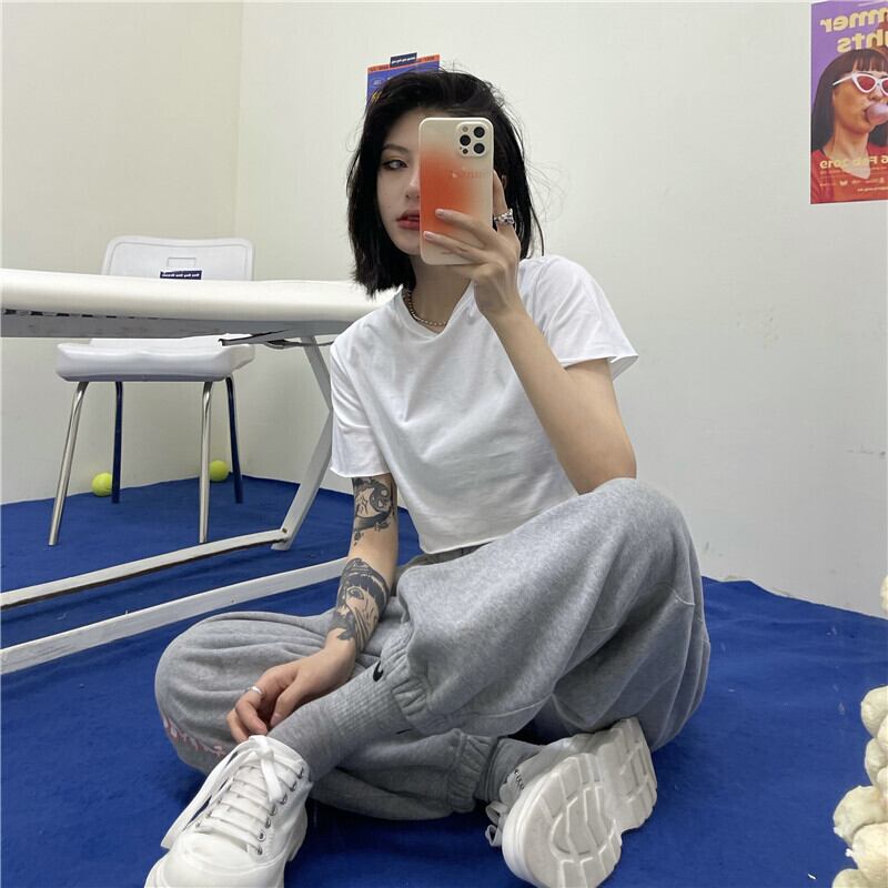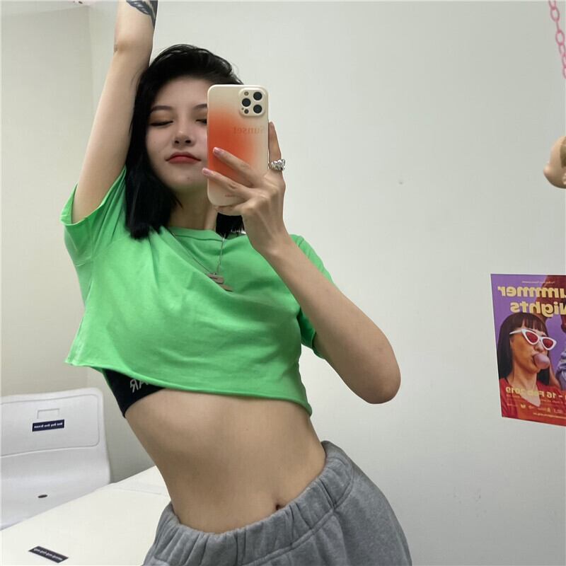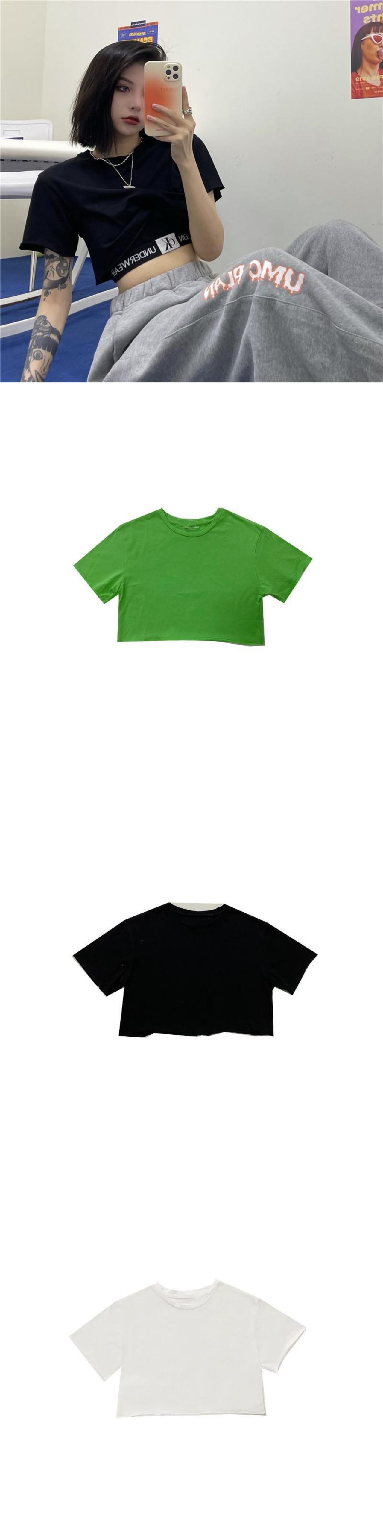 ショートトップス レディース夏服韓国ファッショントレンドスタンダードベーシックソリッド カラーカジュアルルーズTシャツ レトロ 夏物 ソリッドカラー スタイル Studios94352163330