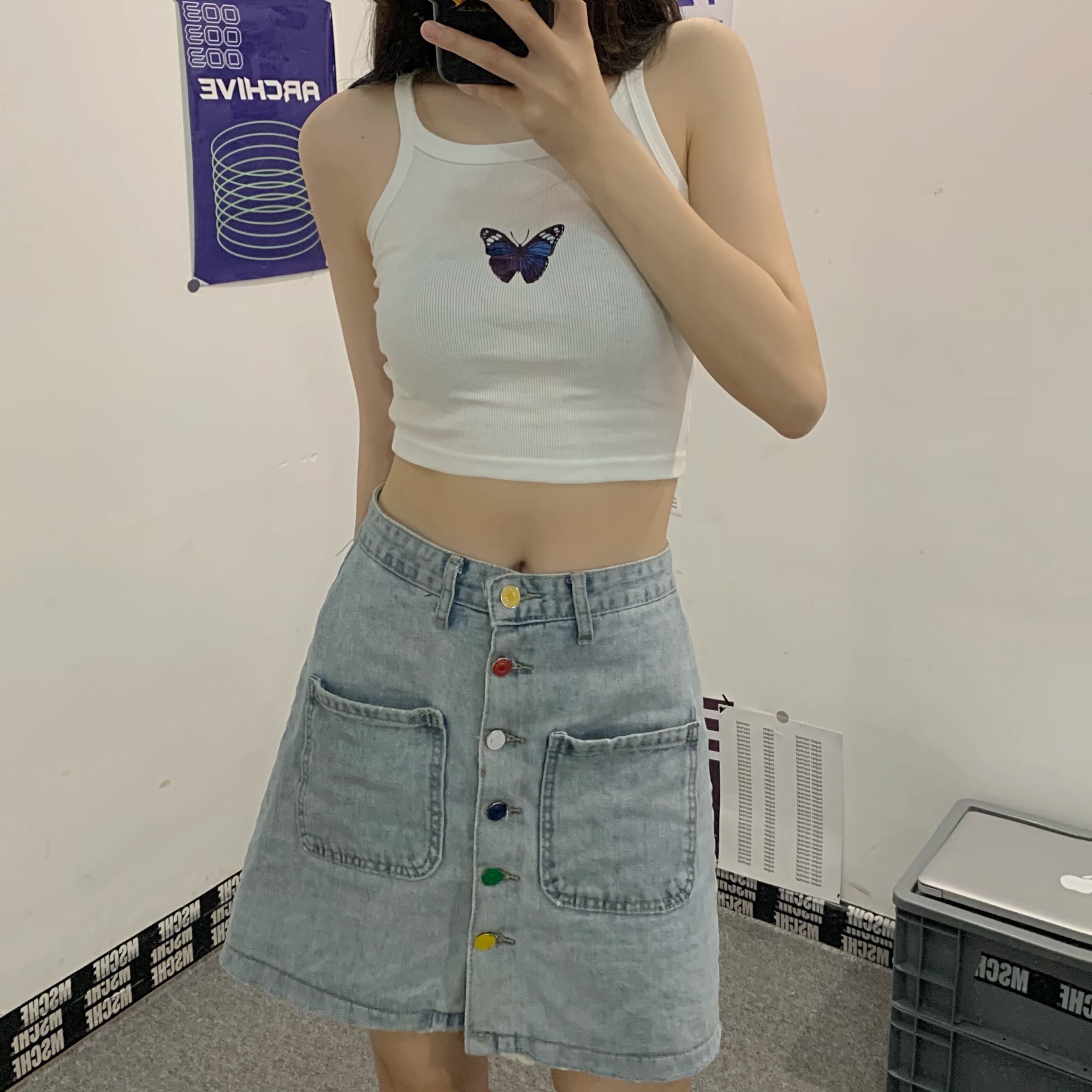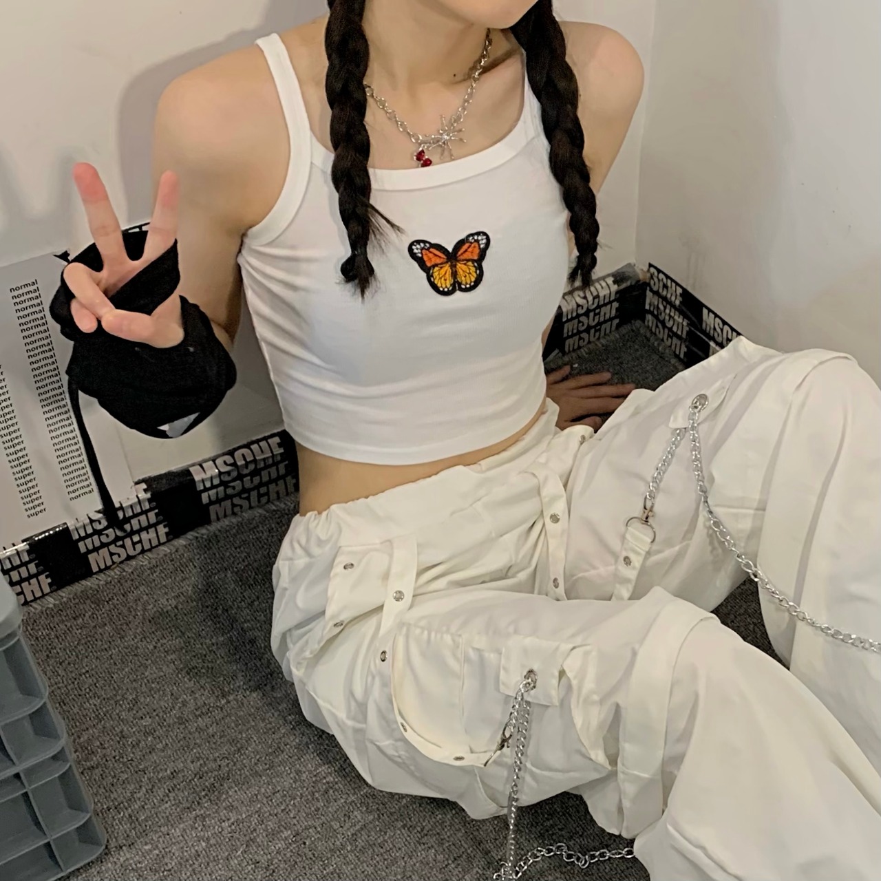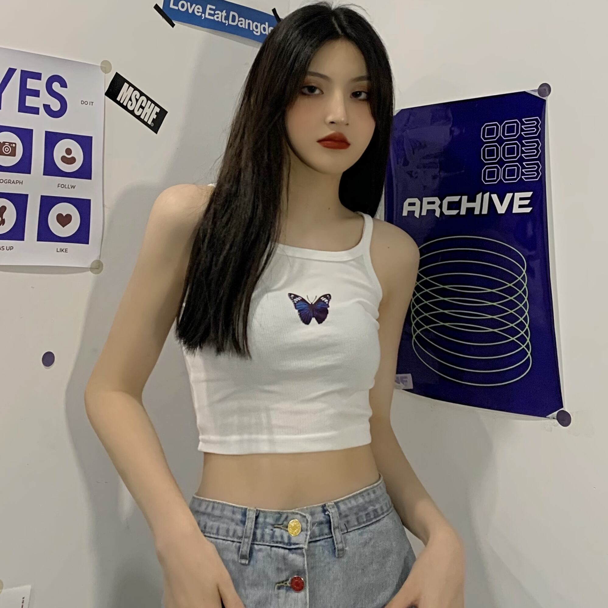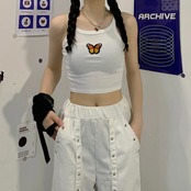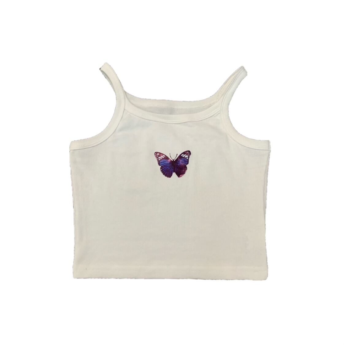 レディース夏服韓国ファッショントレンドButterflyデザイン プリント柄ホワイトショートスリムフィットトップス 夏物 スタイル Studios84148133624 | pLegLad Studios